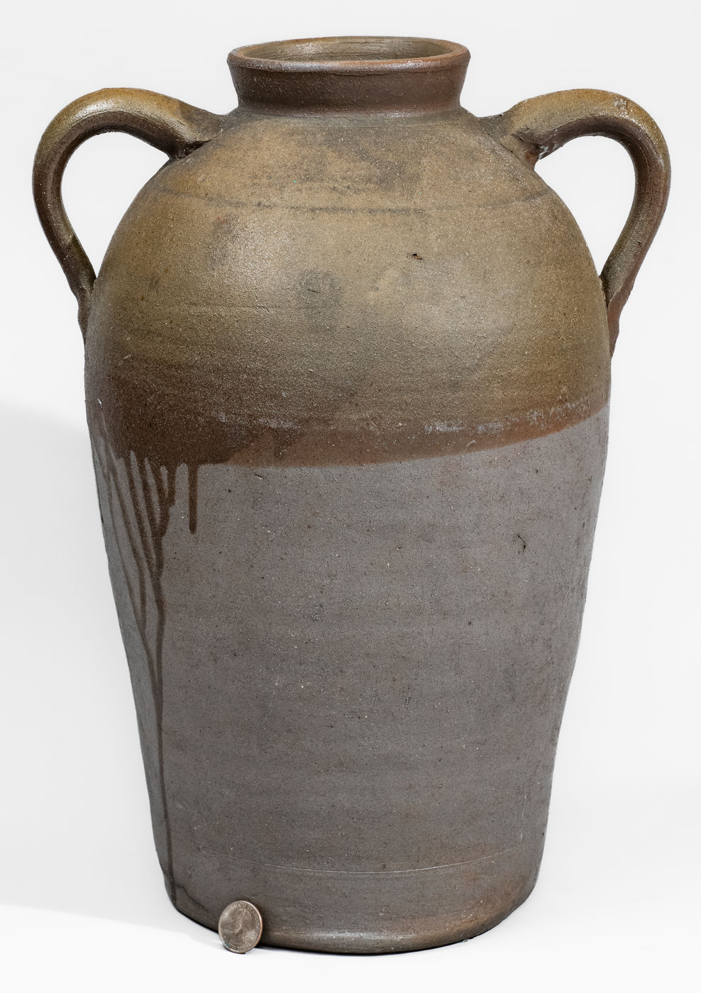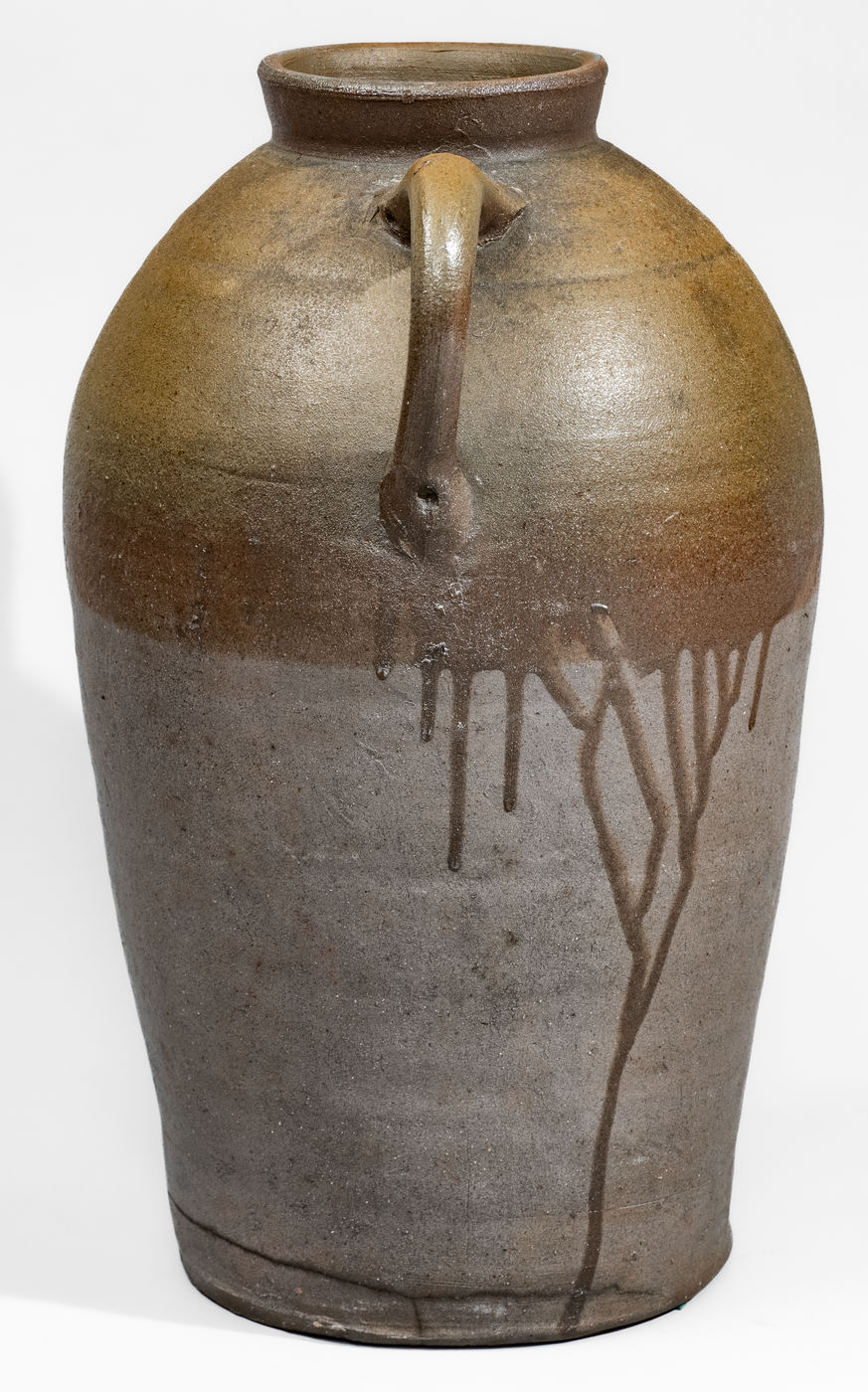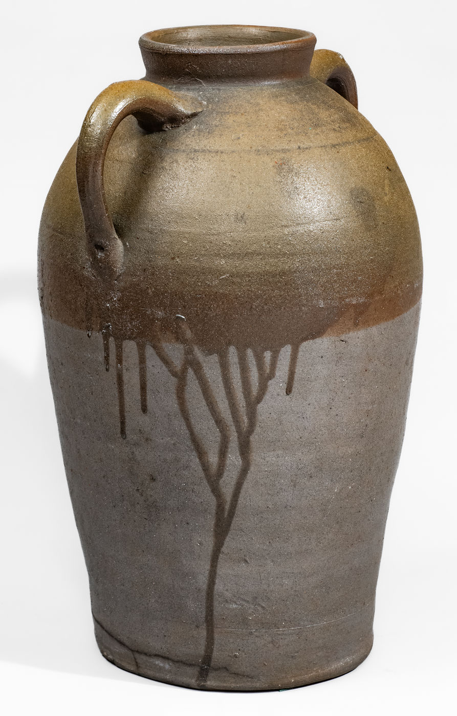 ×Large-Sized Middle Tennessee Salt-Glazed Stoneware Vase w/ Brown Slip Decoration