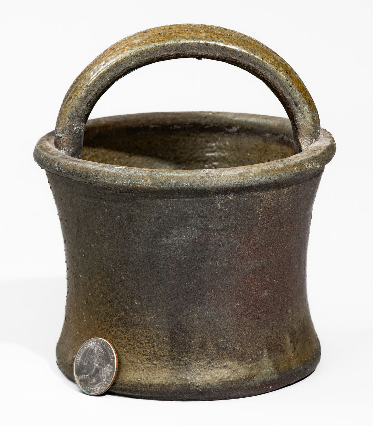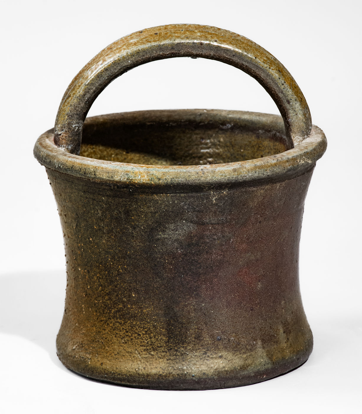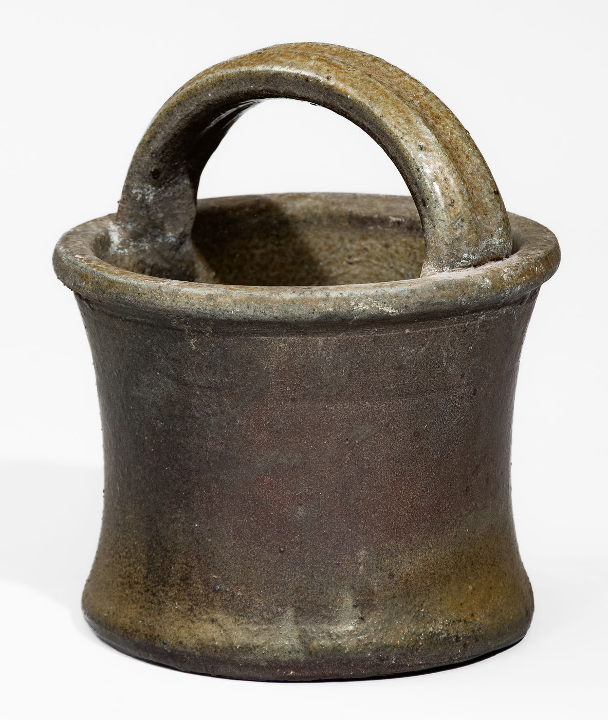 ×Middle TN Salt-Glazed Stoneware Basket w/ Brown Slip, late 19th or early 20th century