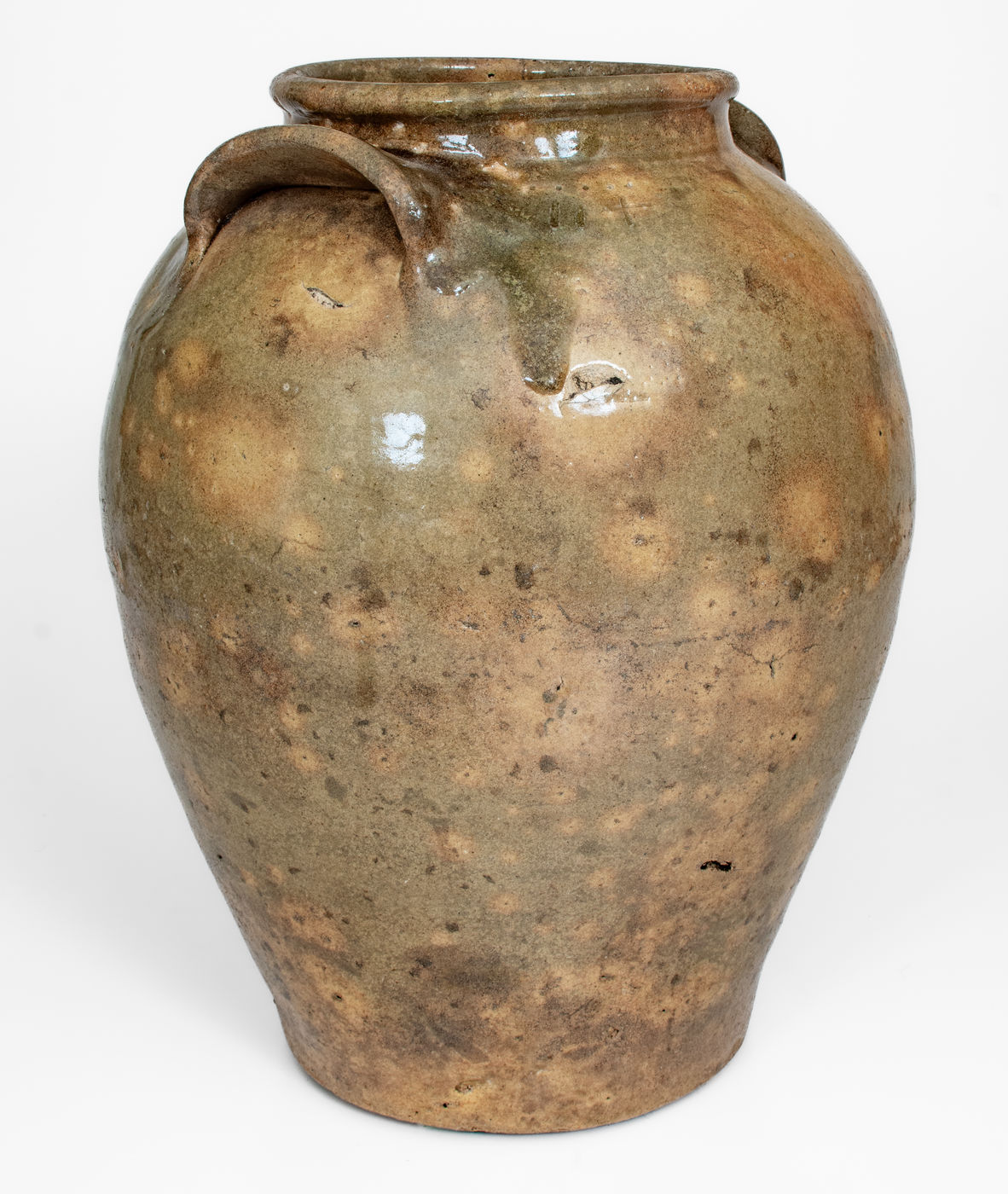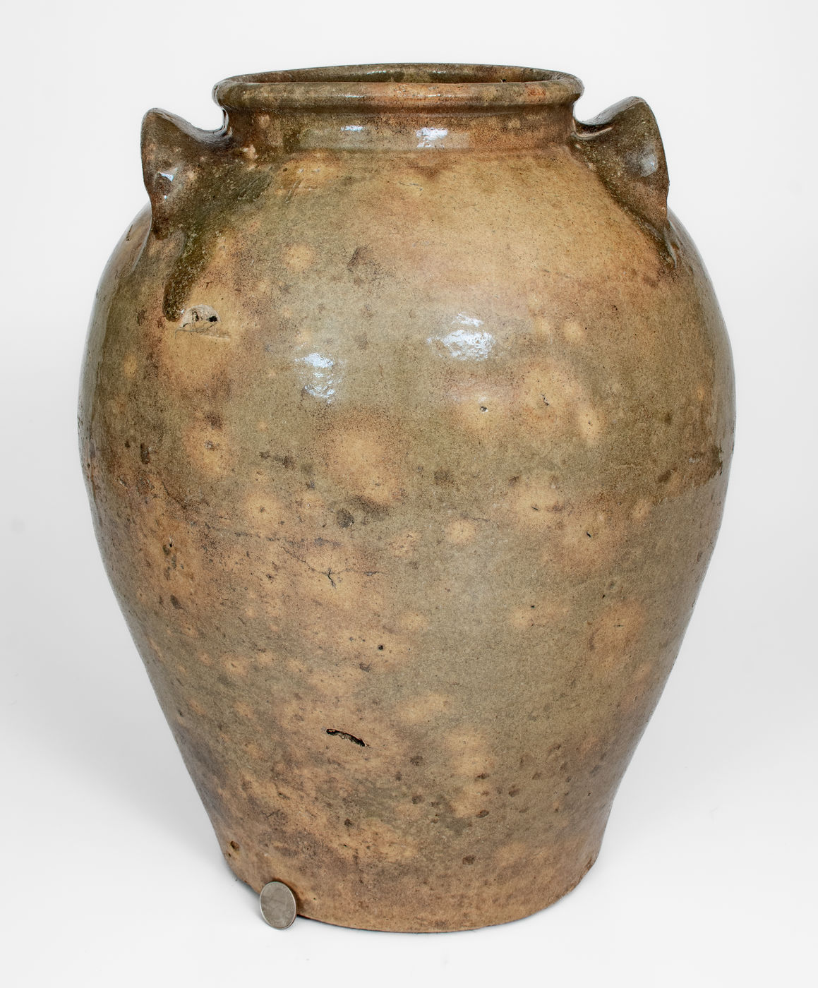 ×Rare Large-Sized Edgefield District, SC Stoneware Jar w/ Incised Markings and Glass Runs, possibly David Drake