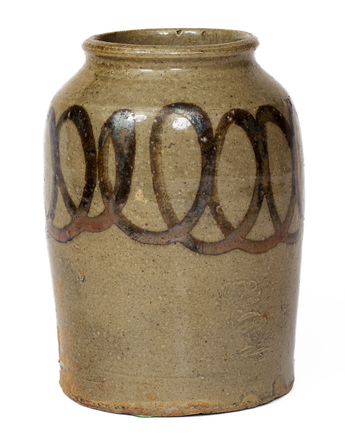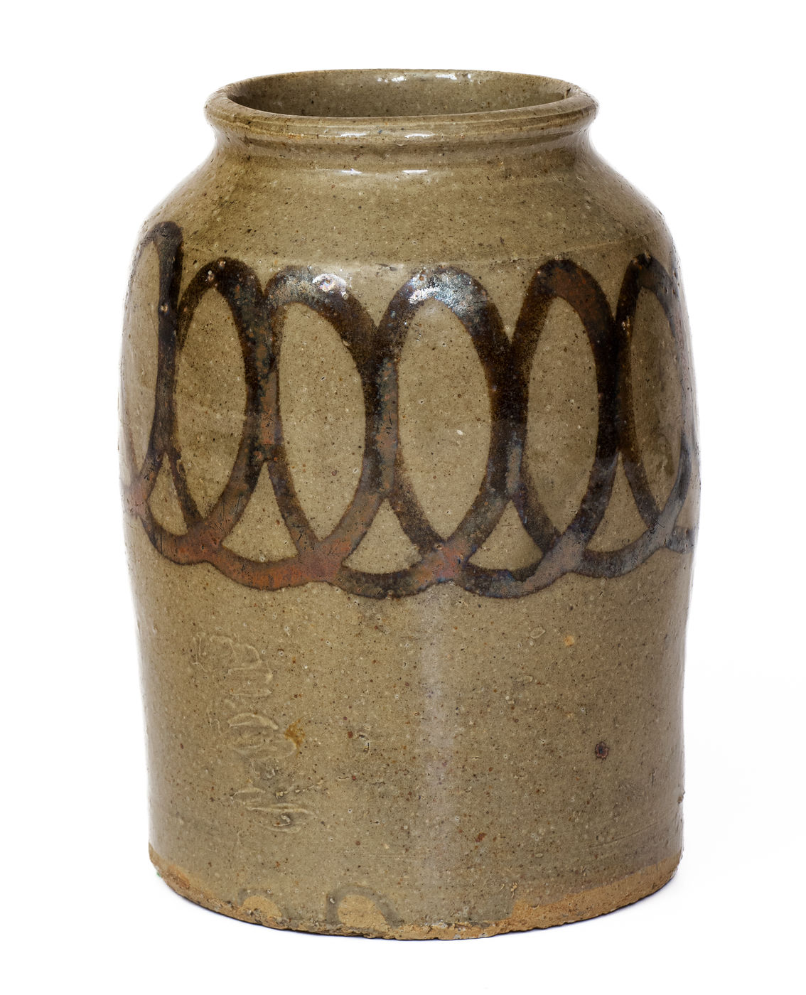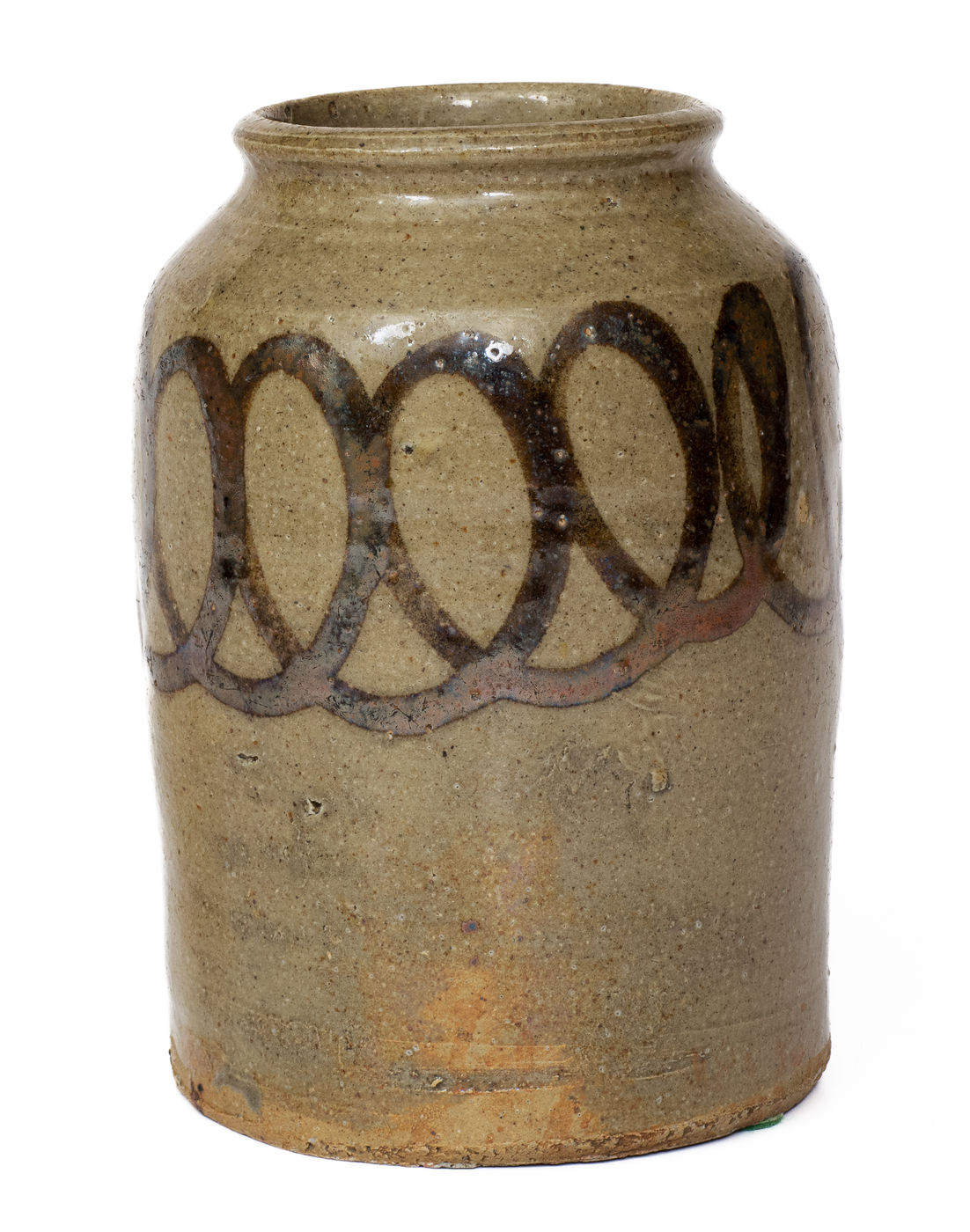 ×Small-Sized attrib. Thomas Chandler, Edgefield District, SC Stoneware Jar w/ Iron Slip Decoration