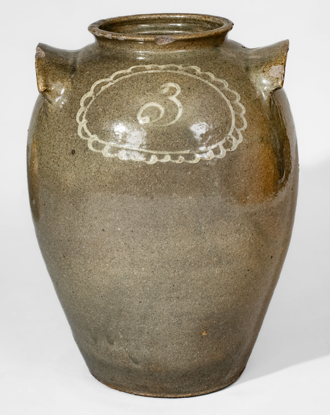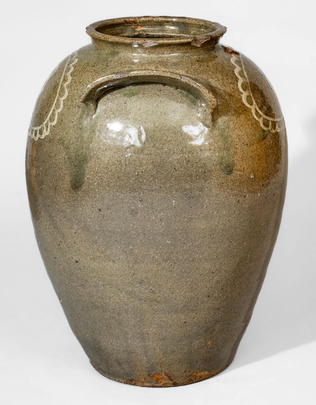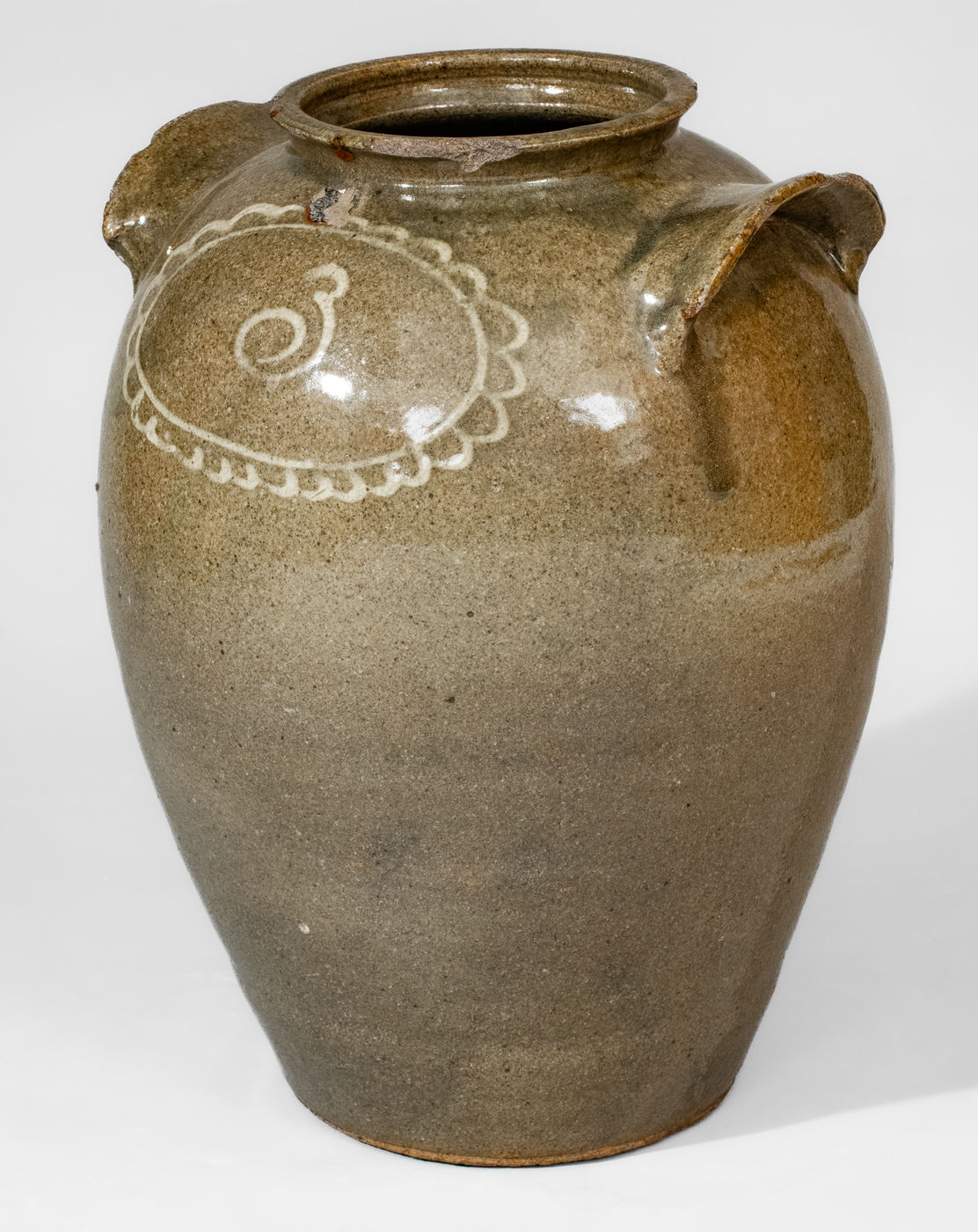 ×Attrib. Thomas Chandler, Edgefield District, SC Stoneware Jar w/ Kaolin-Slip Floral Decoration