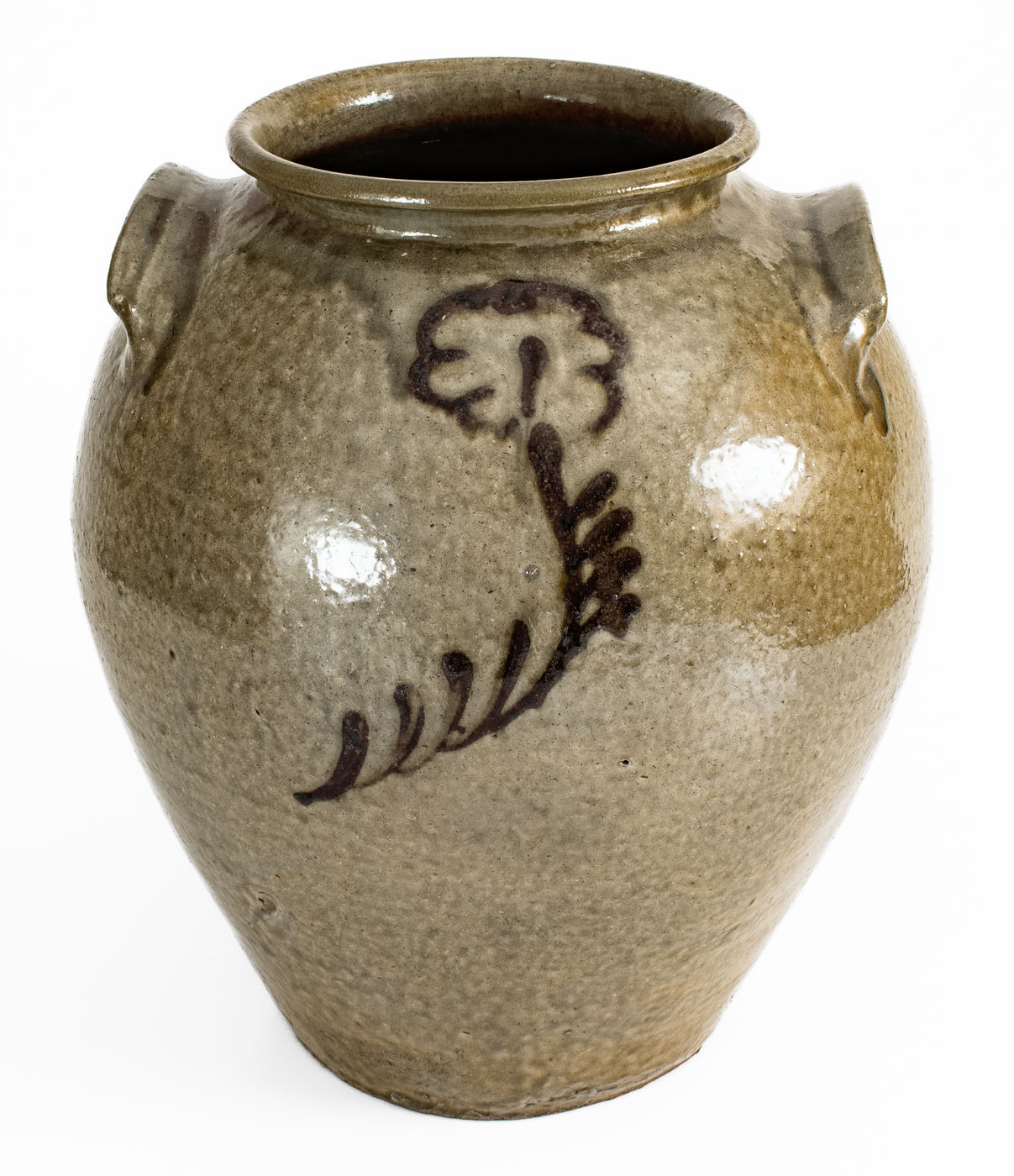 ×Attrib. Thomas Chandler, Edgefield District, South Carolina Stoneware Jar w/ Iron-Slip Floral Decoration