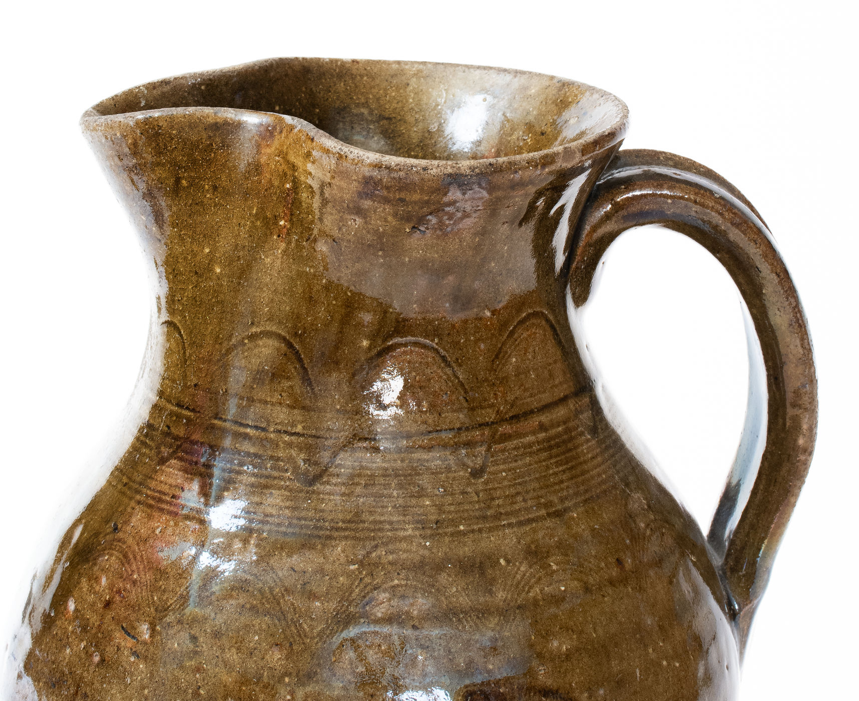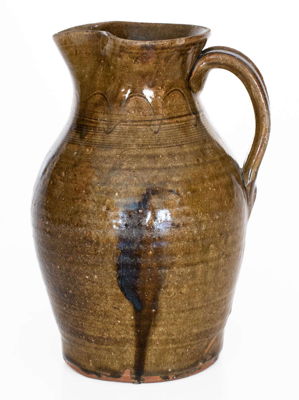 ×Rare attrib. Thomas Owenby, Union County, SC Stoneware Pitcher w/ Iron Oxide Decoration