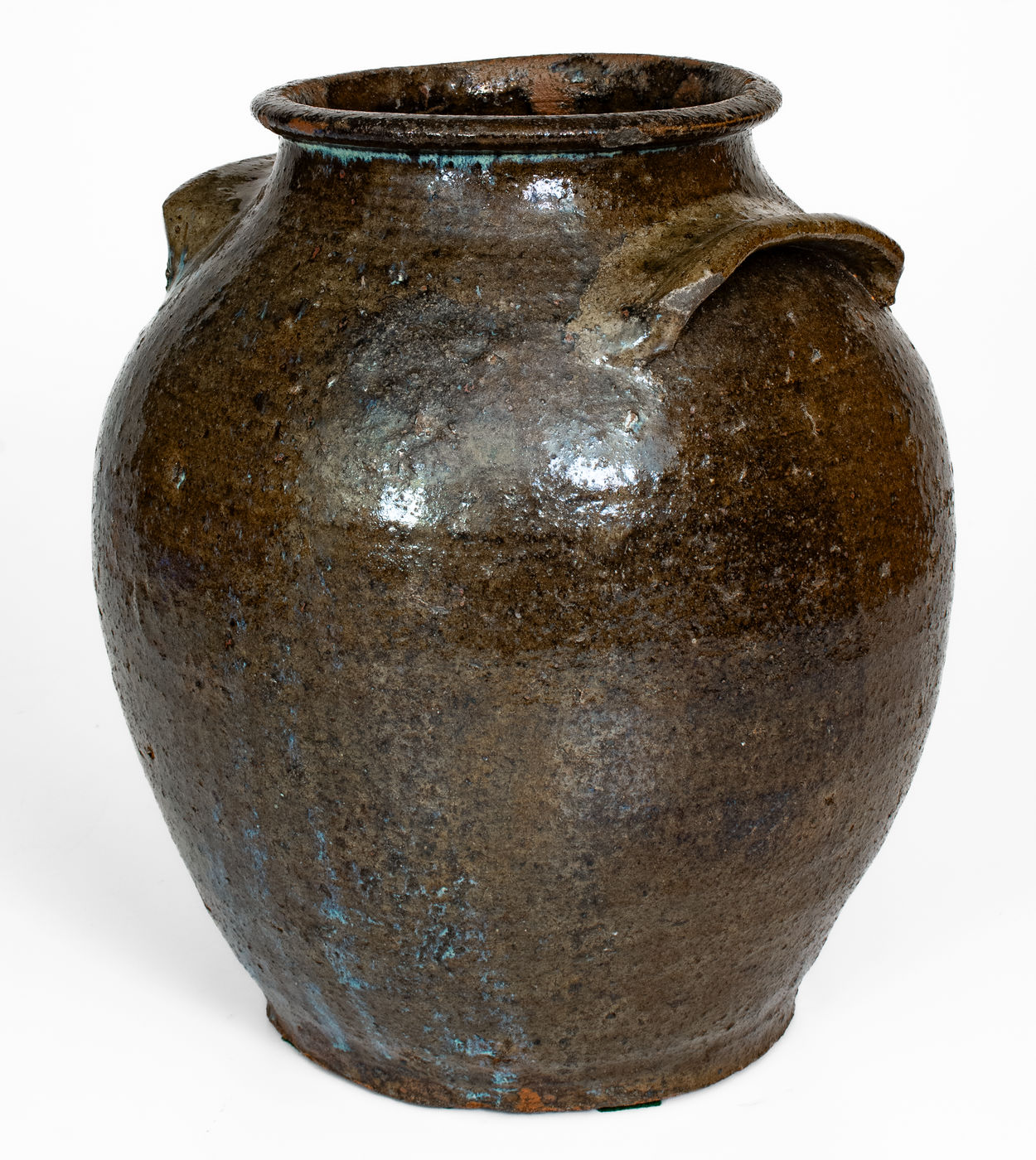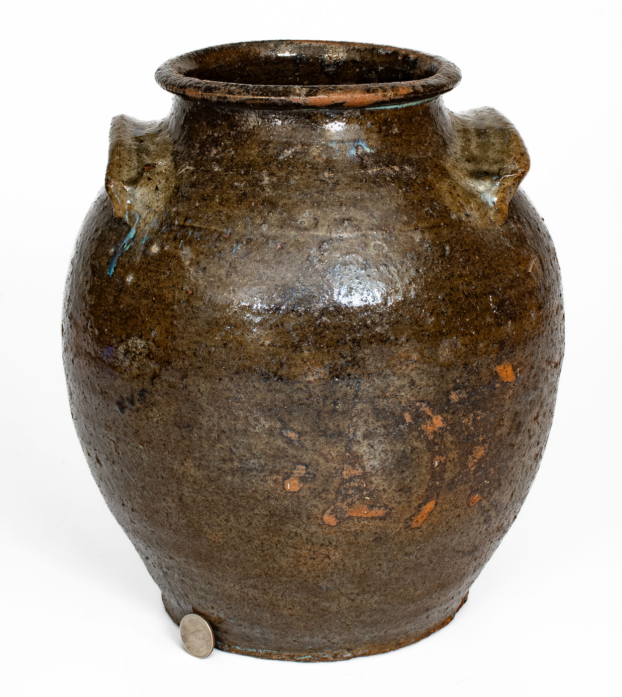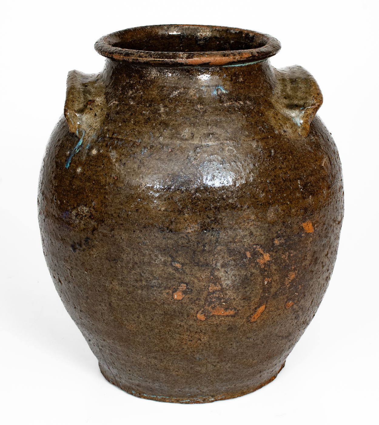 ×Alkaline-Glazed Stoneware Jar w/ Melted Glass Decoration, probably Upstate South Carolina