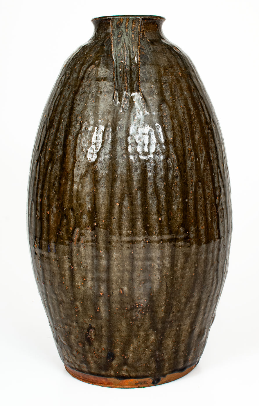 ×Alkaline-Glazed Stoneware Jar w/ Open Handles, South Carolina or Georgia