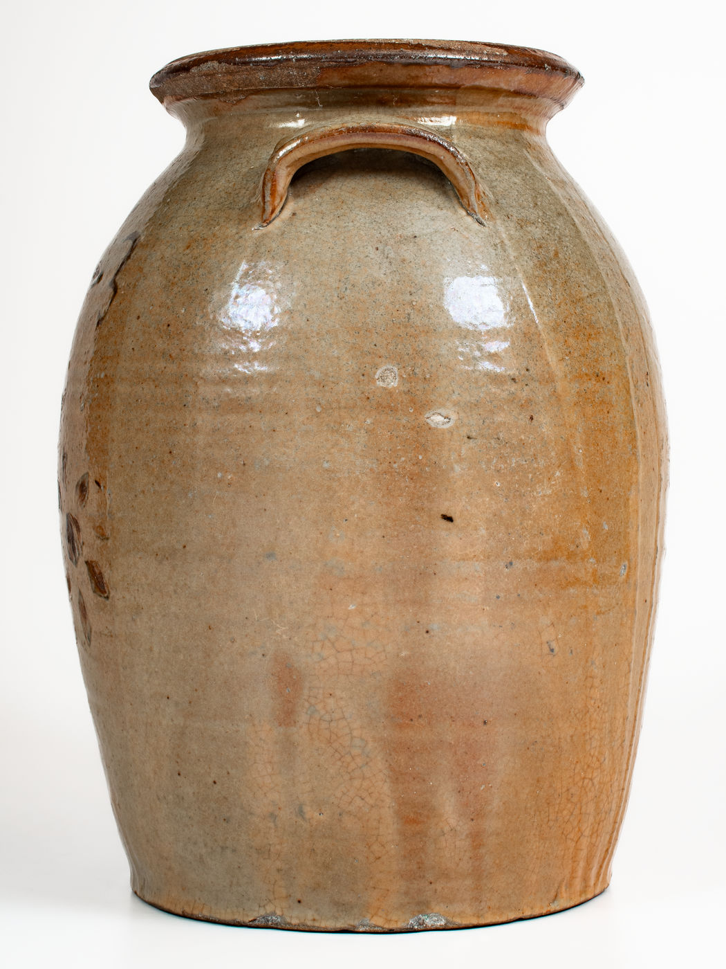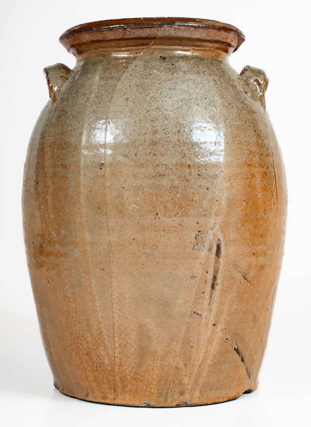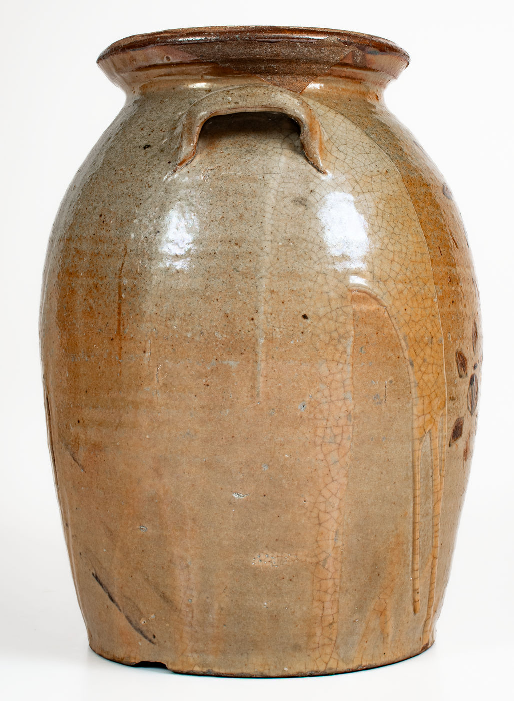 ×Fine attrib. Whelchel Family, Gaffney, SC Area Stoneware Jar w/ Iron-Slip Floral Decoration
