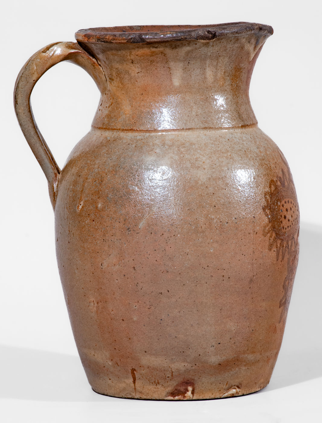 ×Very Rare attrib. Whelchel Family, Gaffney, SC Area Stoneware Pitcher w/ Freehand Iron-Slip Floral Decoration