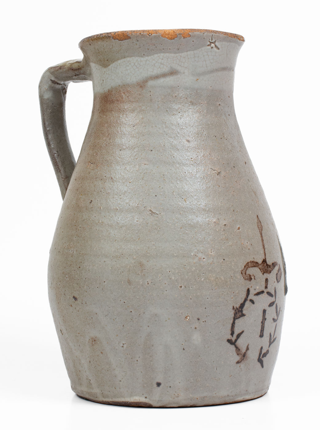 ×Scarce attrib. Whelchel Family, Gaffney, SC Area Stoneware Pitcher w/ Brown-Slip Stenciled Decoration