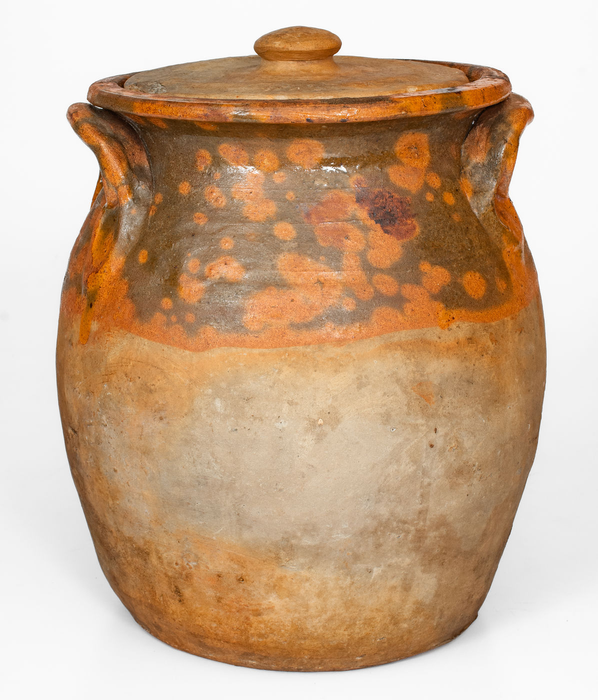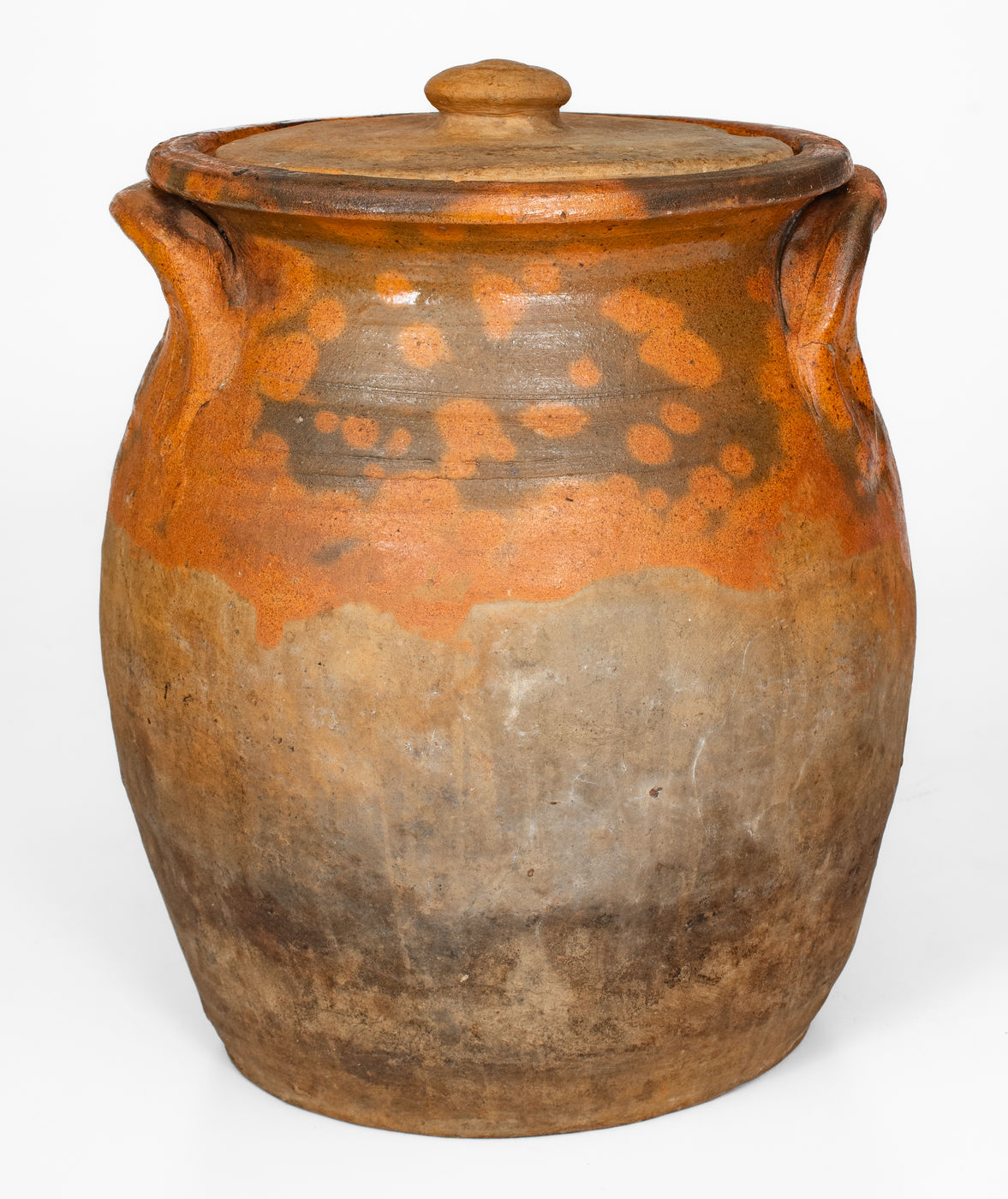 ×Rare attrib. Nathan Dicks, Randolph County, NC Redware Jar w/ Lid, c1875-1910
