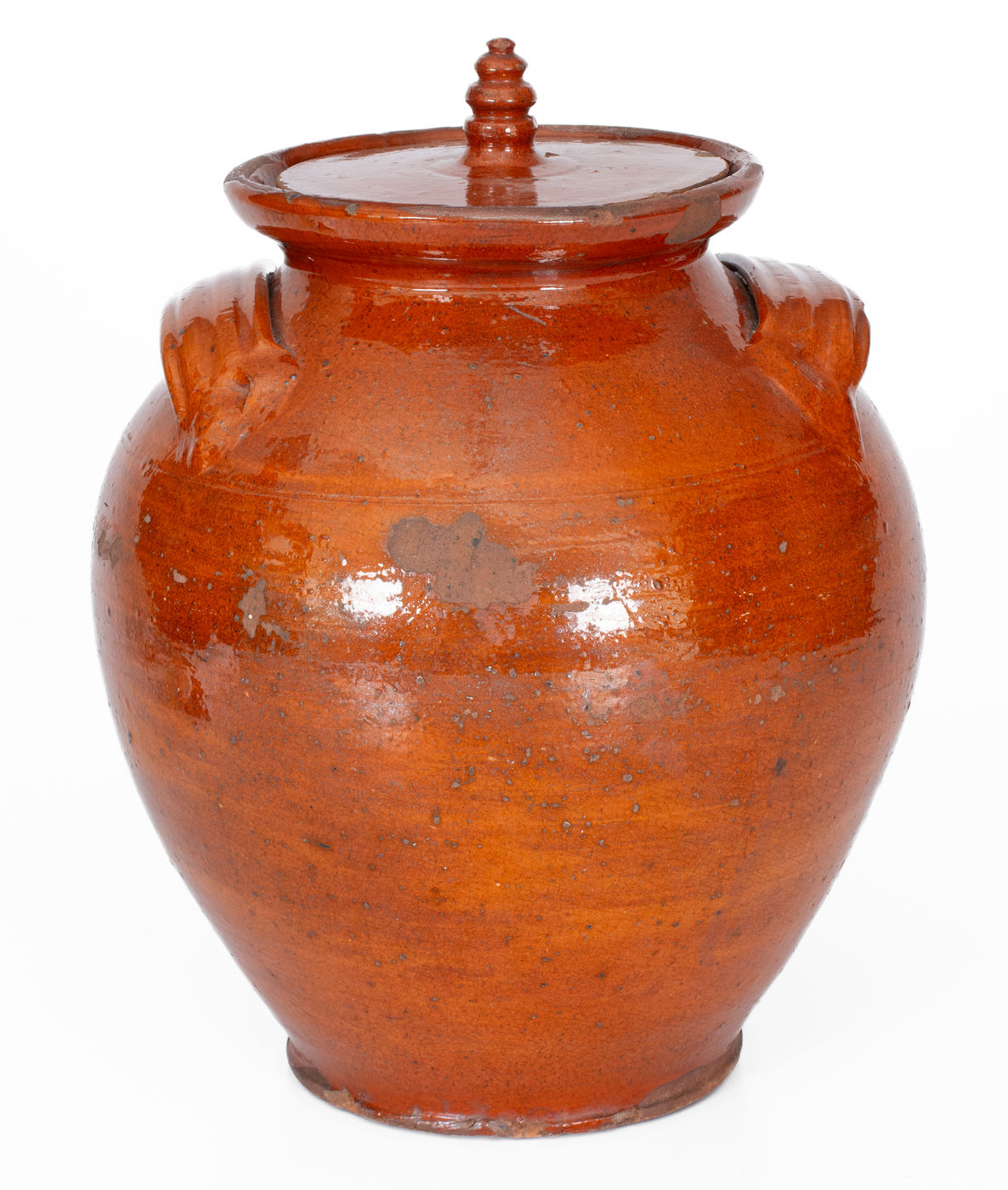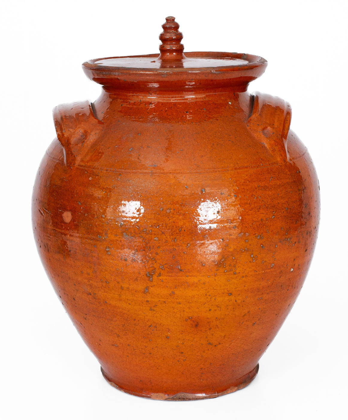 ×Rare Glazed Redware Jar w/ Lid, probably North Carolina, early to mid 19th century