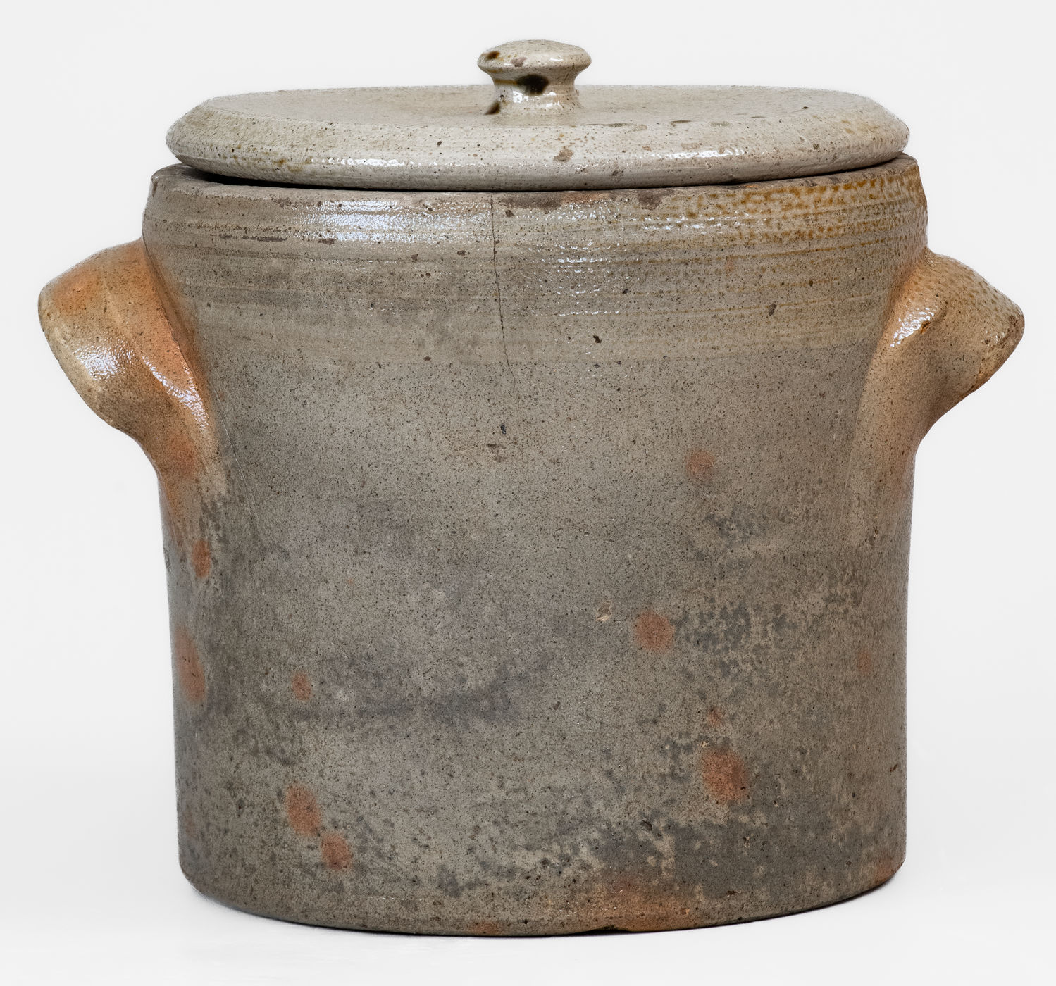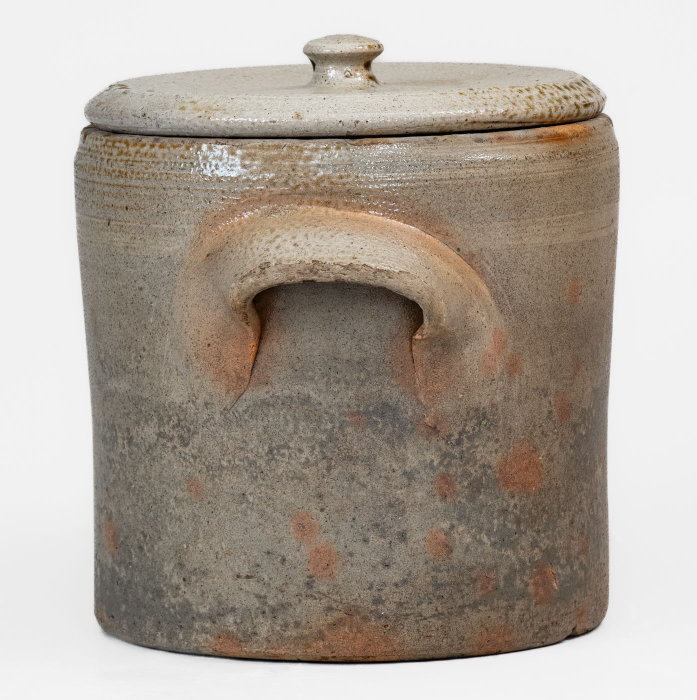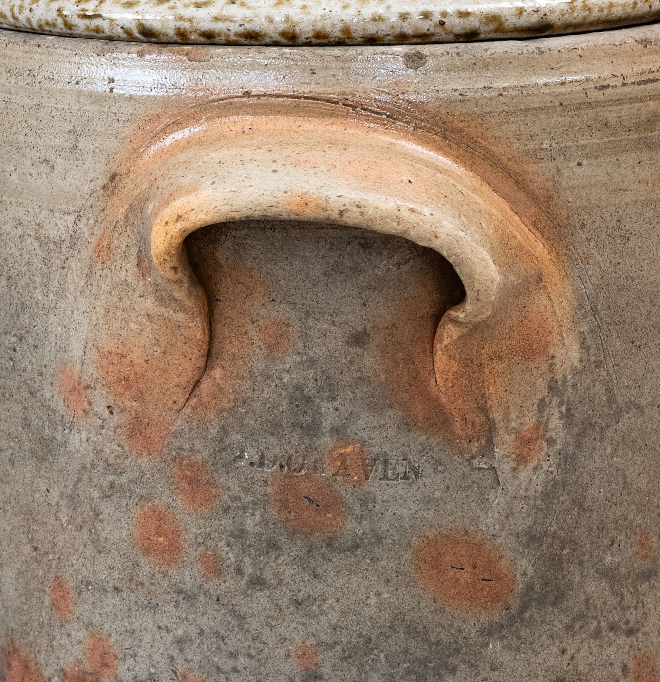 ×J. D. CRAVEN, Randolph or Moore County, NC Salt-Glazed Stoneware Cake Crock w/ Lid