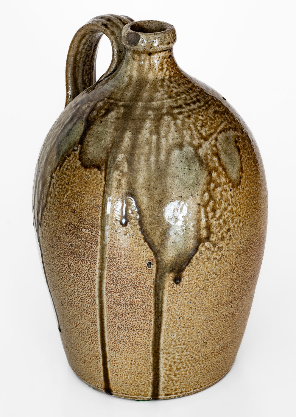 ×Salt-Glazed Stoneware Jug w/ Dramatic Glaze Runs, probably John Anderson Craven, Randolph Co, NC