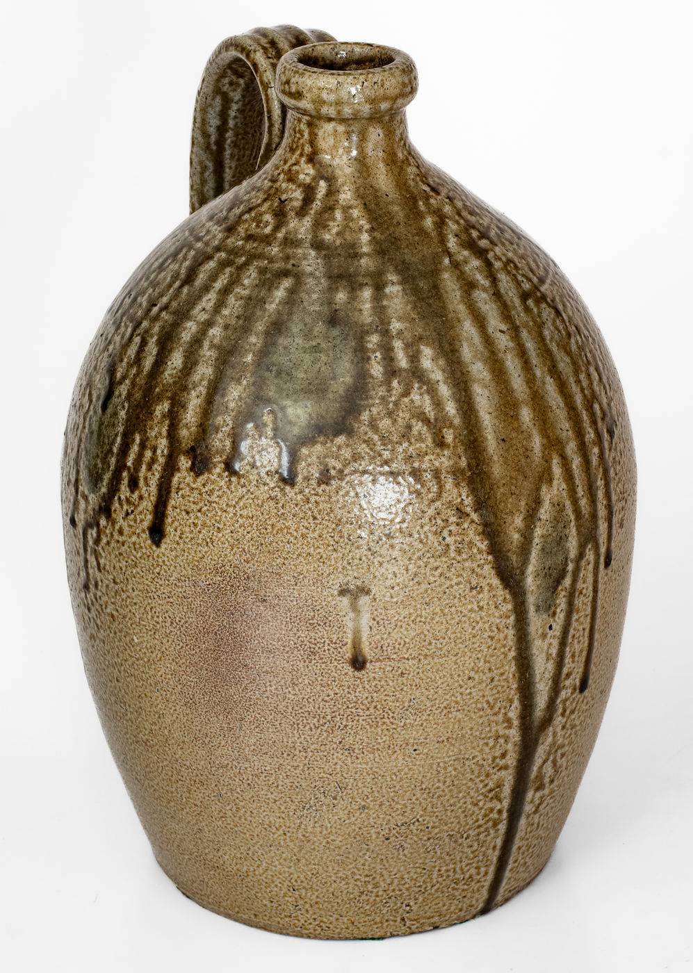 ×Salt-Glazed Stoneware Jug w/ Dramatic Glaze Runs, probably John Anderson Craven, Randolph County, NC