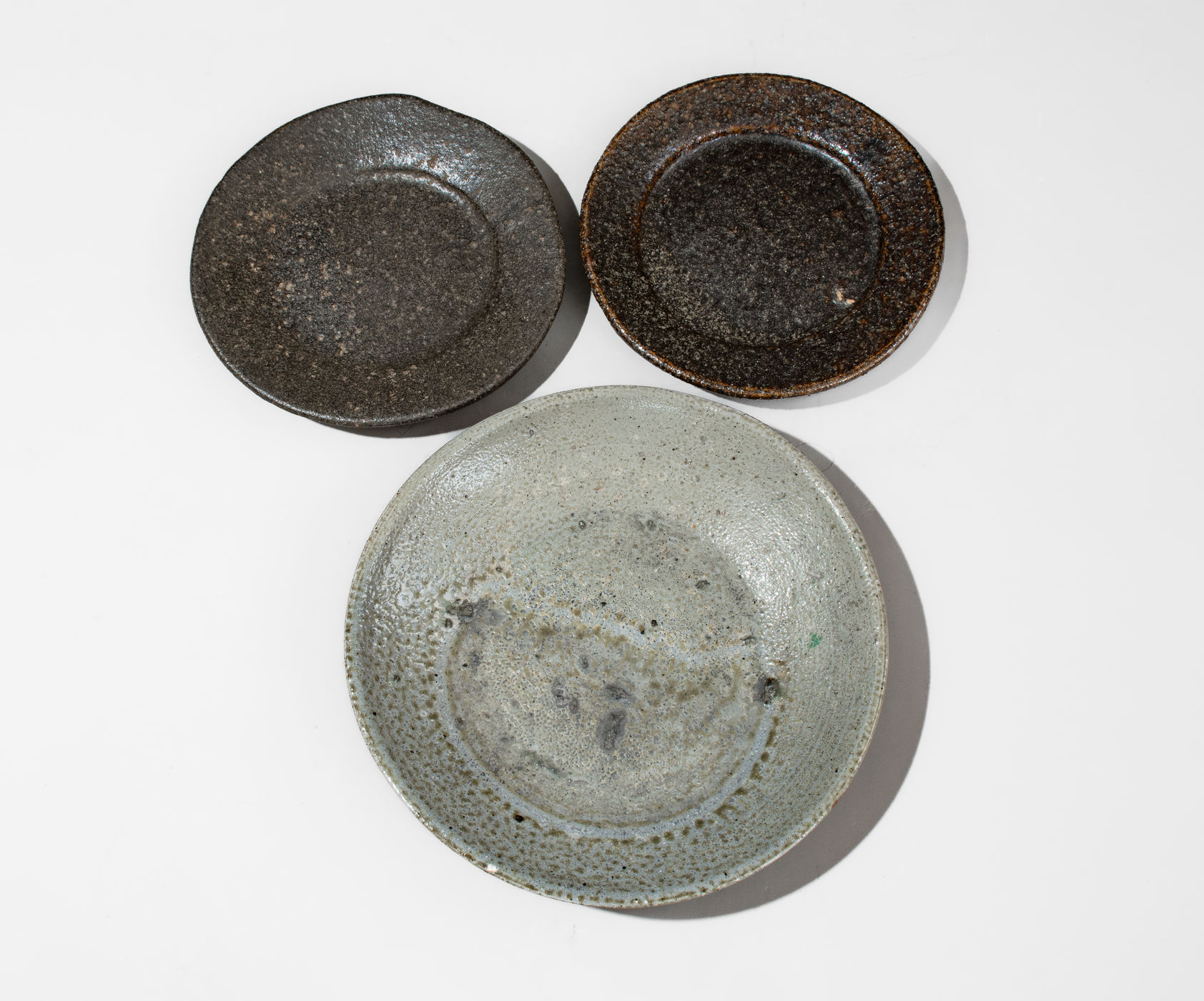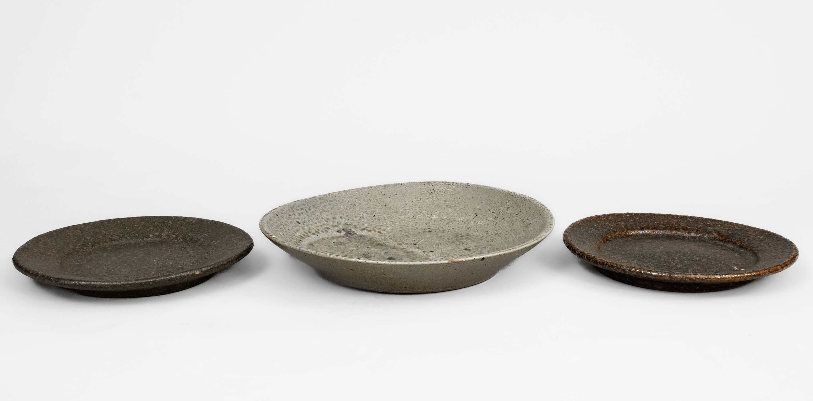 ×Three Glazed North Carolina Stoneware Plates, late 19th century or early 20th century