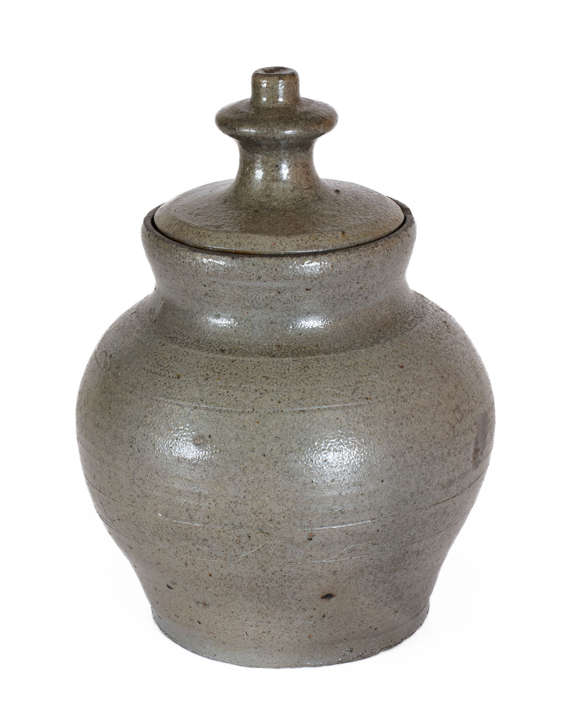 ×Bristol, Tennessee Area Salt-Glazed Stoneware Sugar Jar w/ Lid, c1860-90