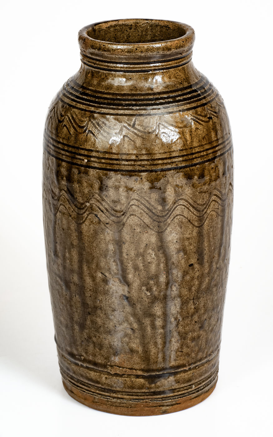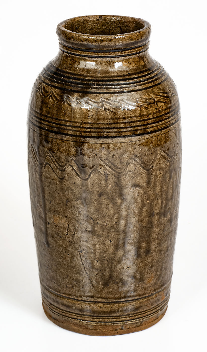 ×Catawba Valley, North Carolina Stoneware Jar w/ Elaborate Incised Decoration, c1850-80