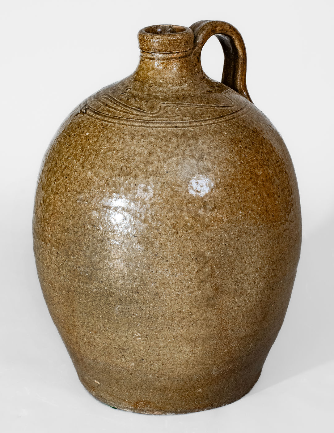 ×Two-Gallon Catawba Valley, NC Alkaline-Glazed Stoneware Jug, c1850-1880