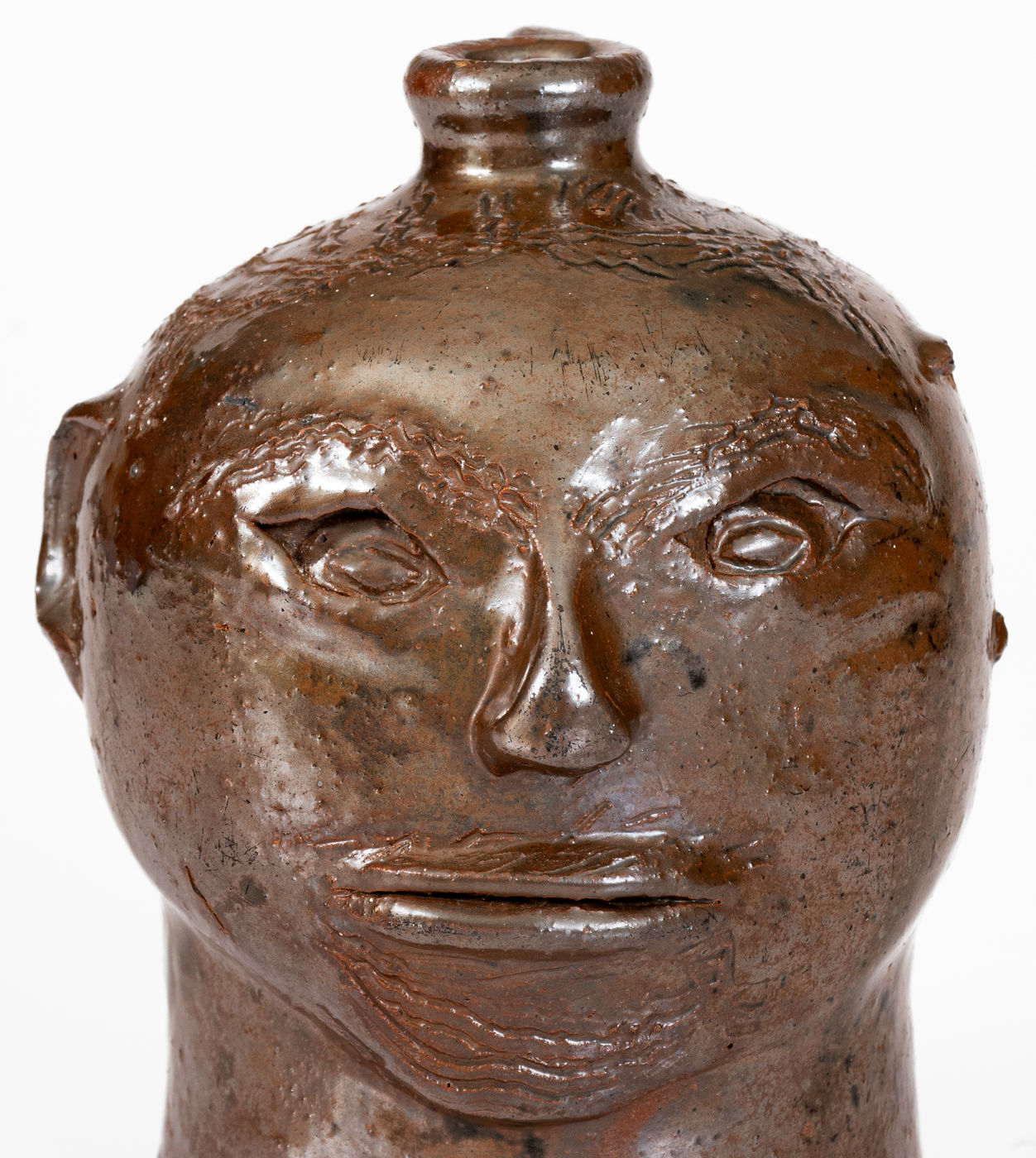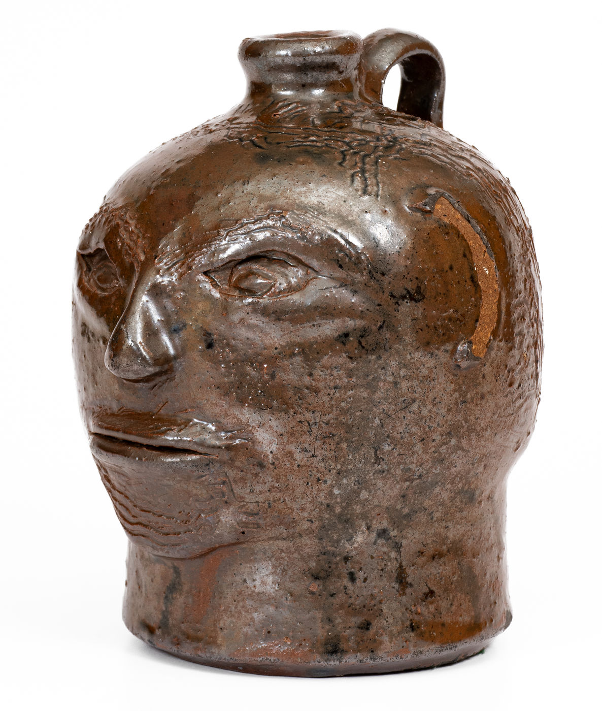 ×Rare Small-Sized White Co, GA Stoneware Face Jug attrib. William Hewell at "Daddy Bill" Dorsey Pottery