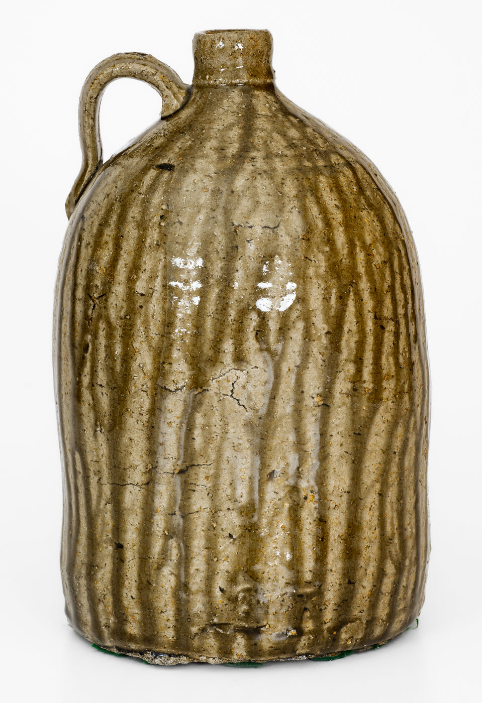 ×Crawford County, North Carolina Alkaline-Glazed Stoneware Jug, Stamped "J"
