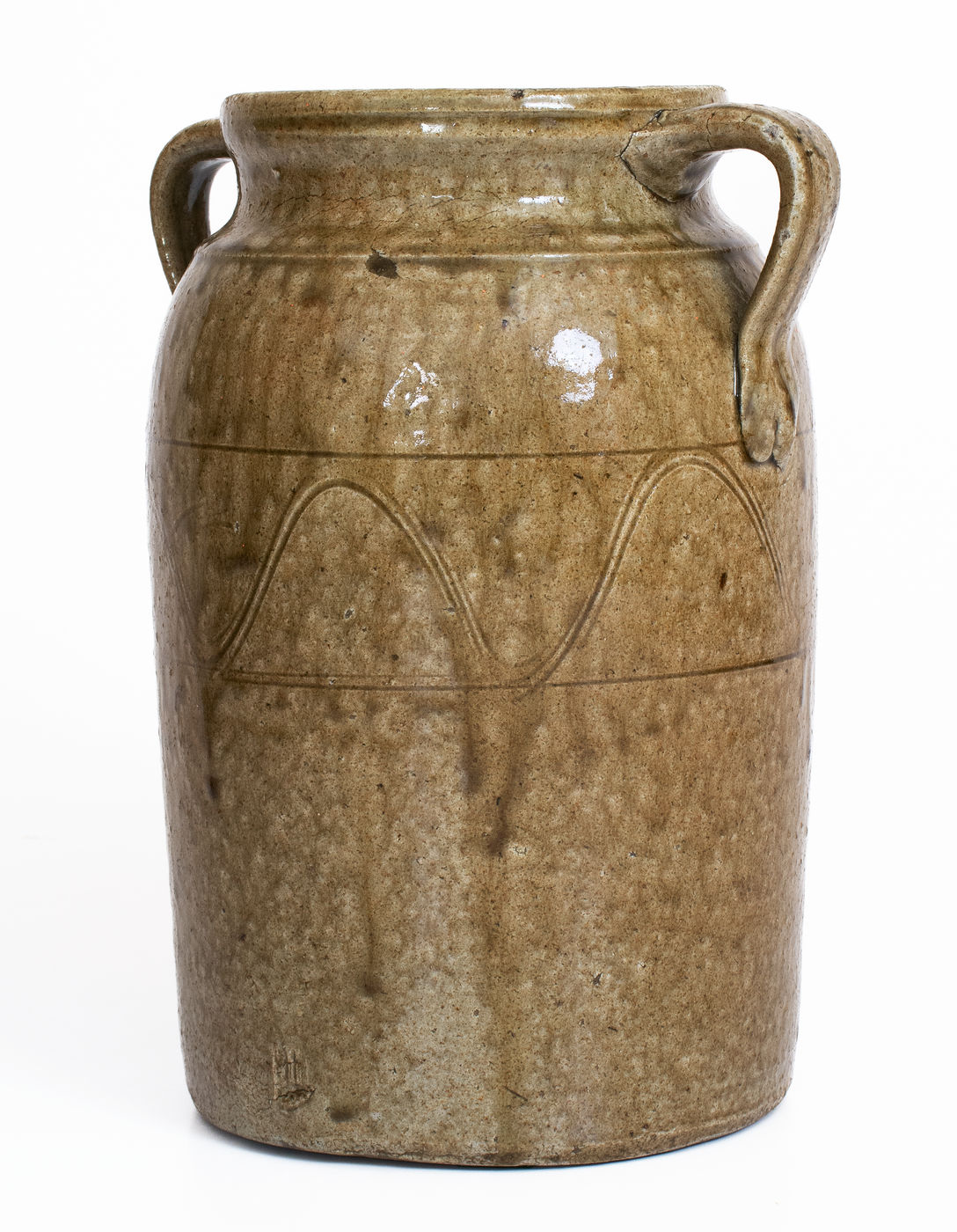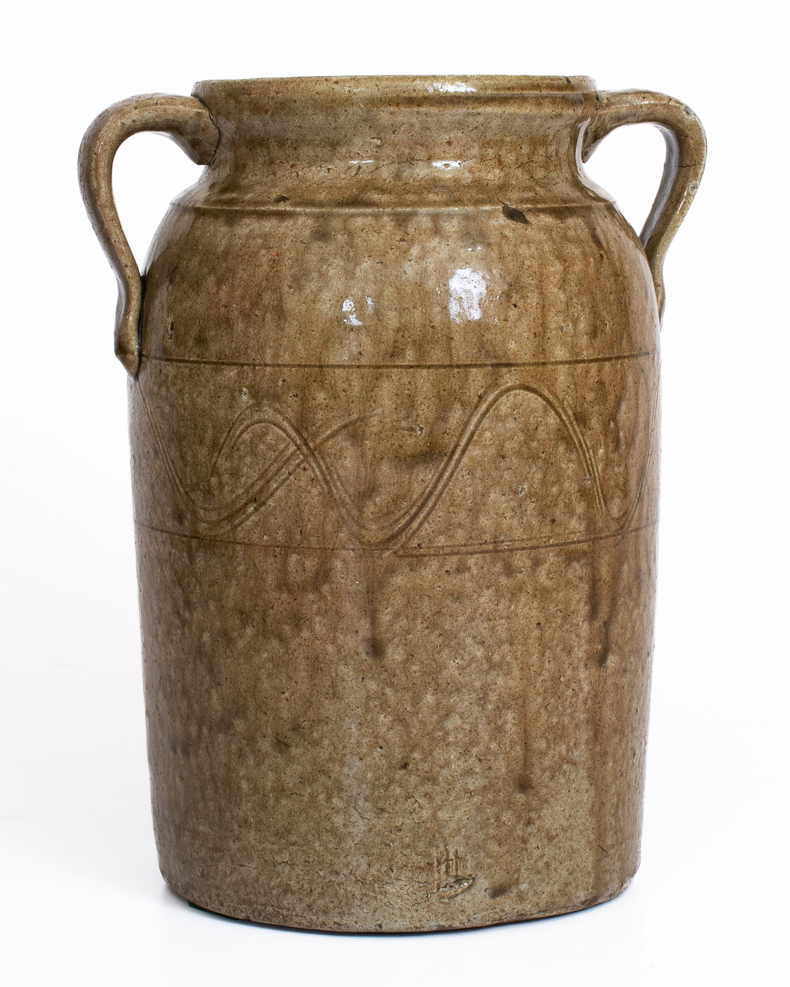 ×Alkaline-Glazed Stoneware Table Churn, Georgia or Alabama, c1850-80