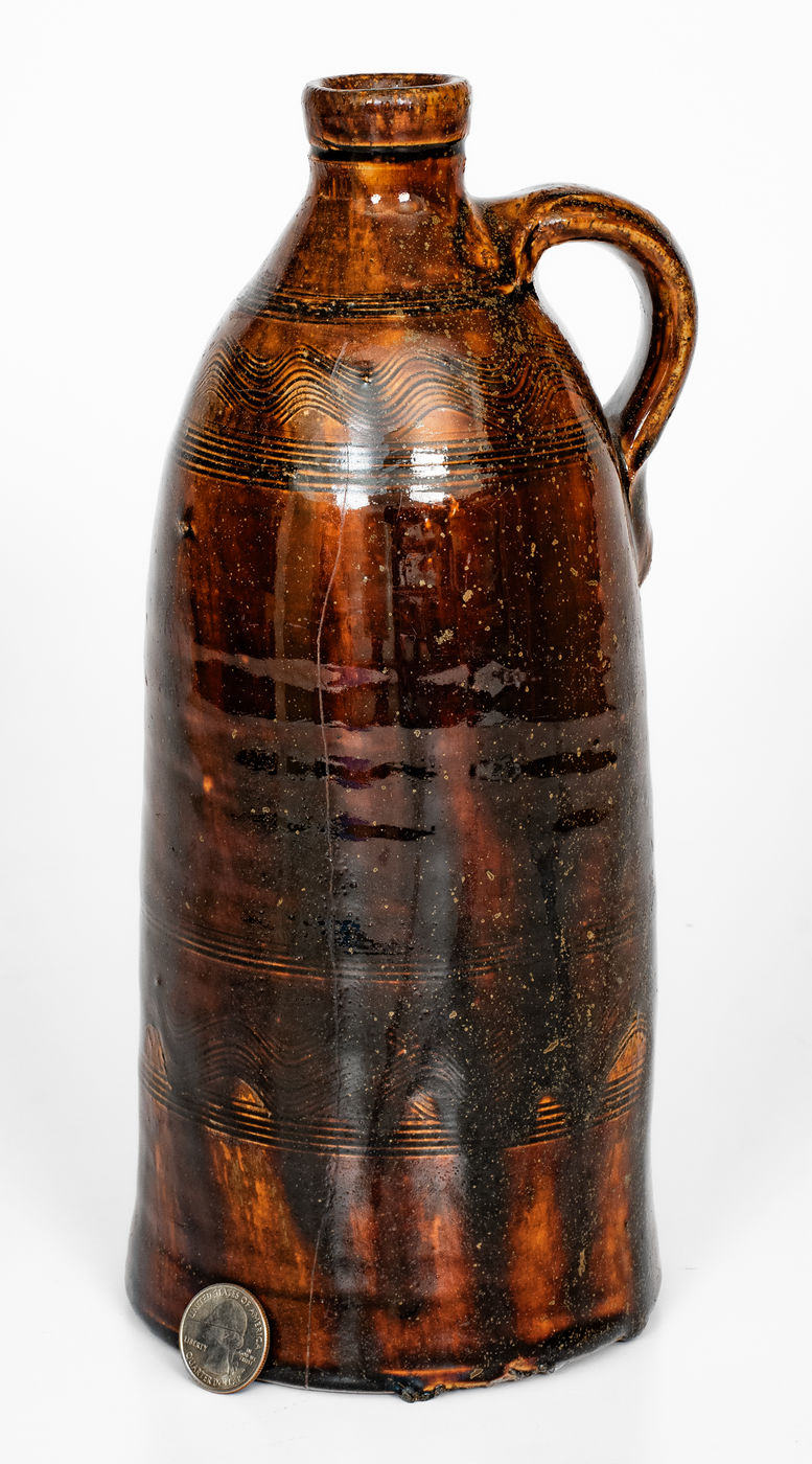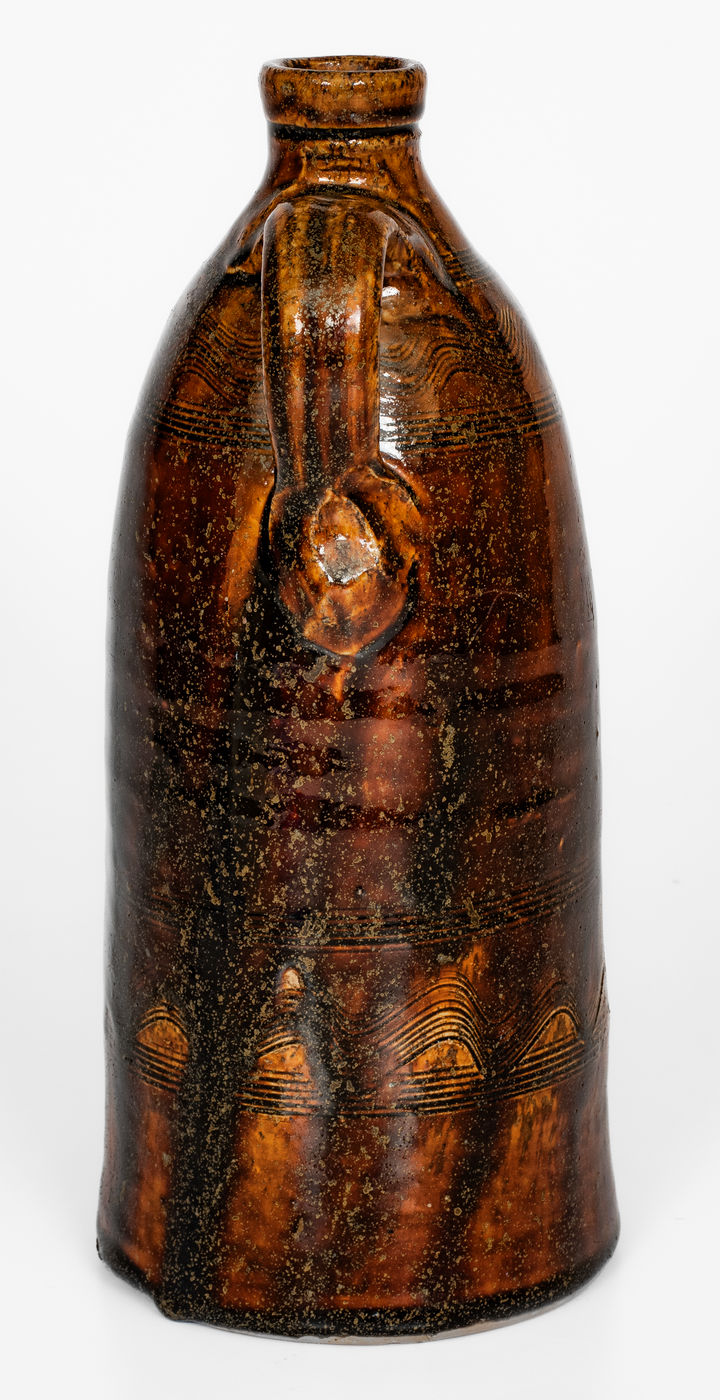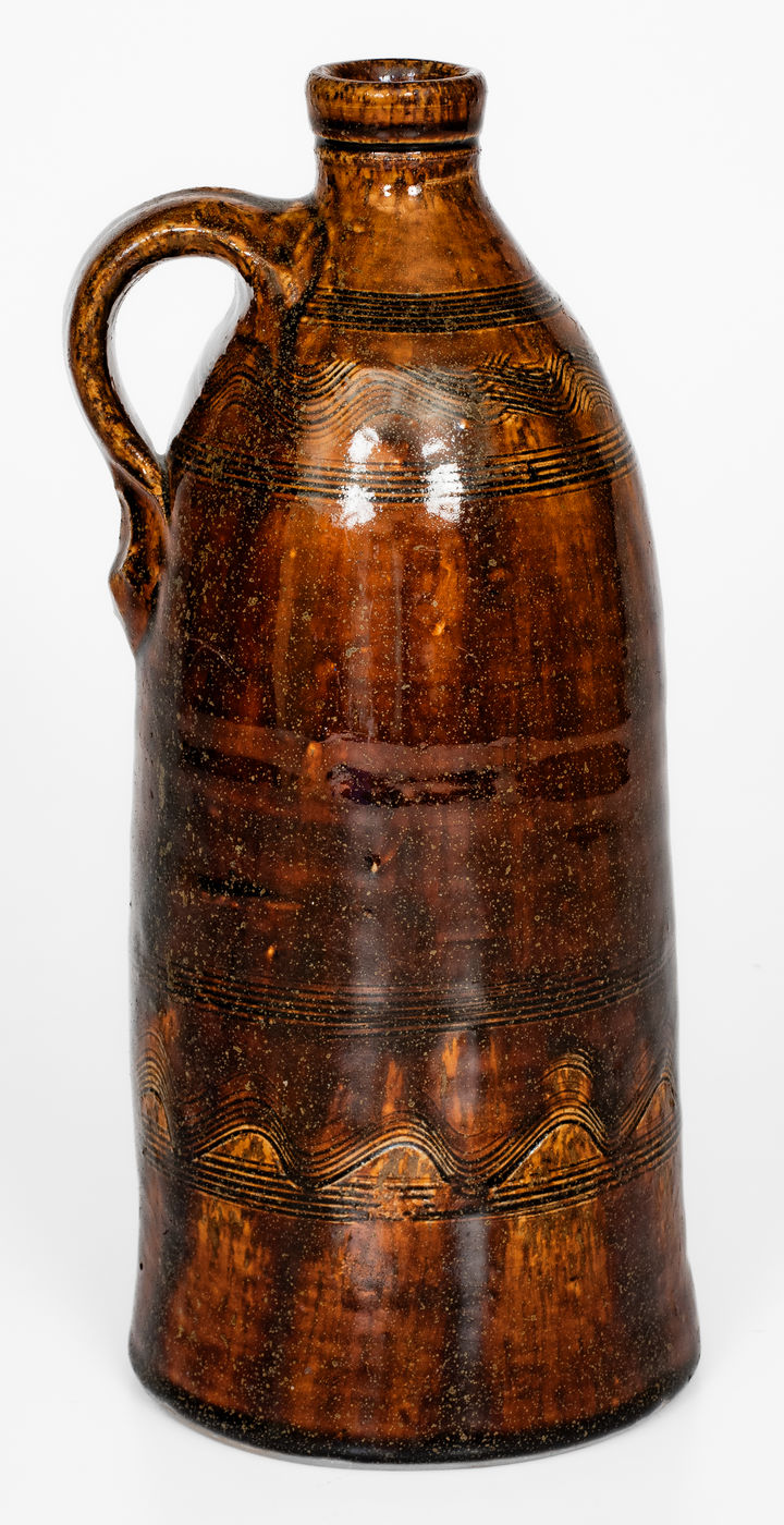 ×Fine Sand Mountain, Alabama Alkaline-Glazed Stoneware Jug w/ Incised Decoration, c1850-1880