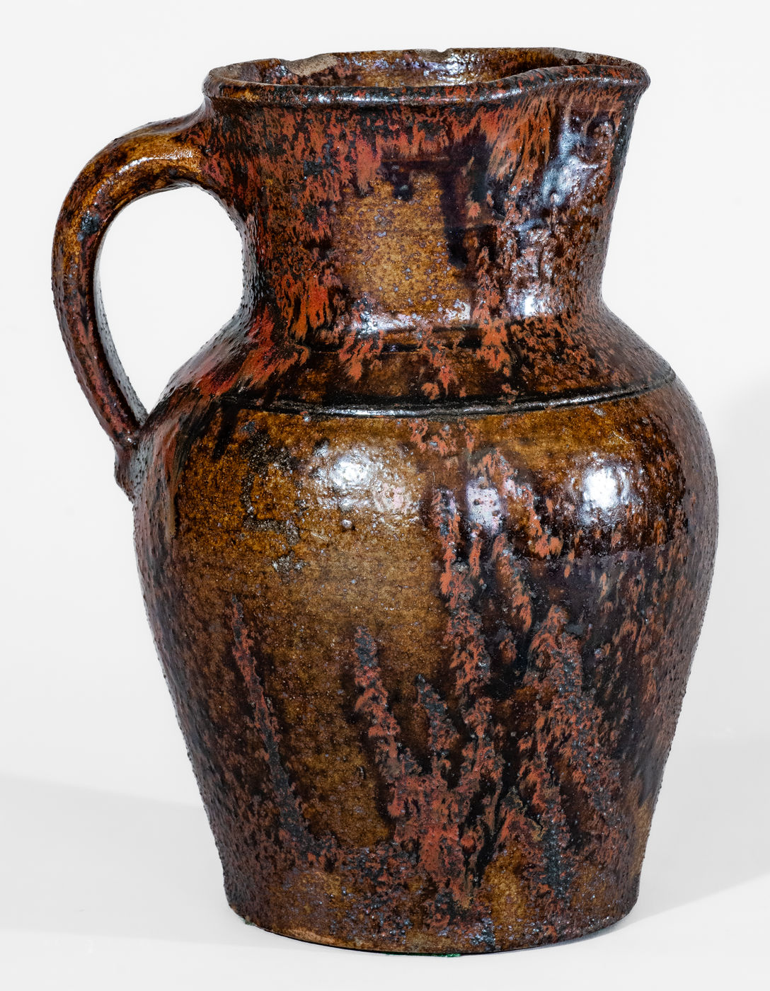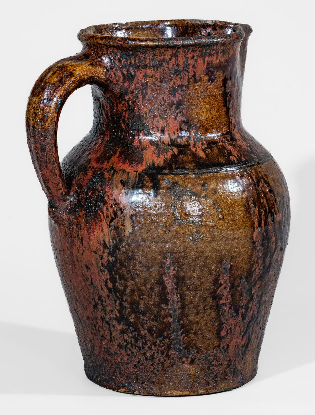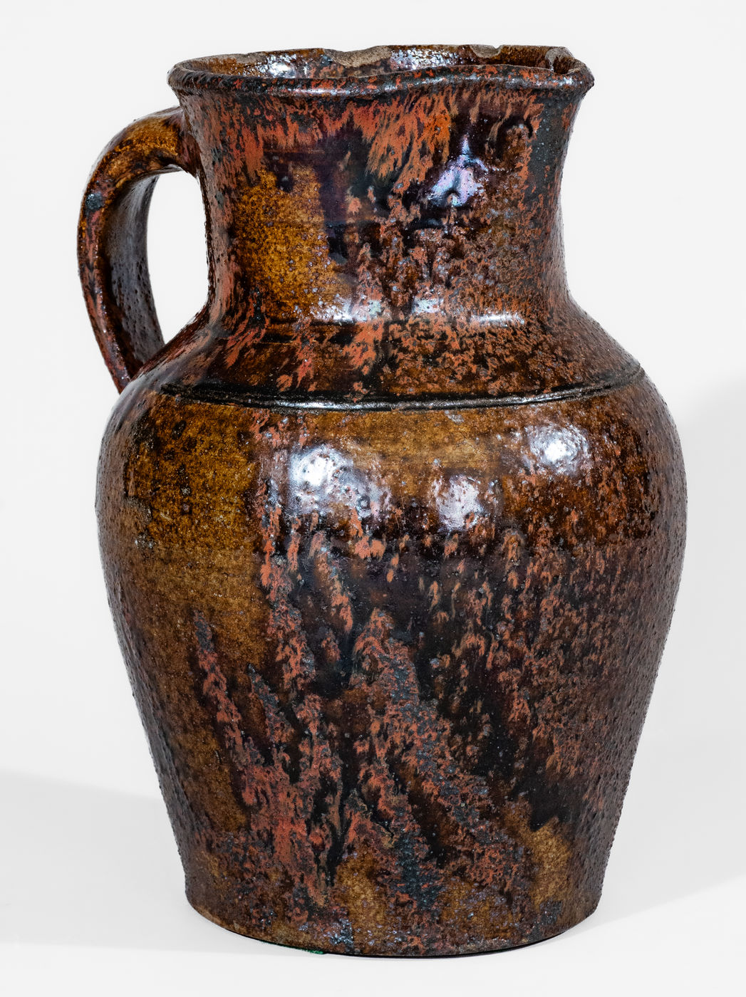 ×Fine Texas Stoneware Pitcher w/ Iron Slip Decoration, probably Jefferson S. Nash Pottery, c1850-60