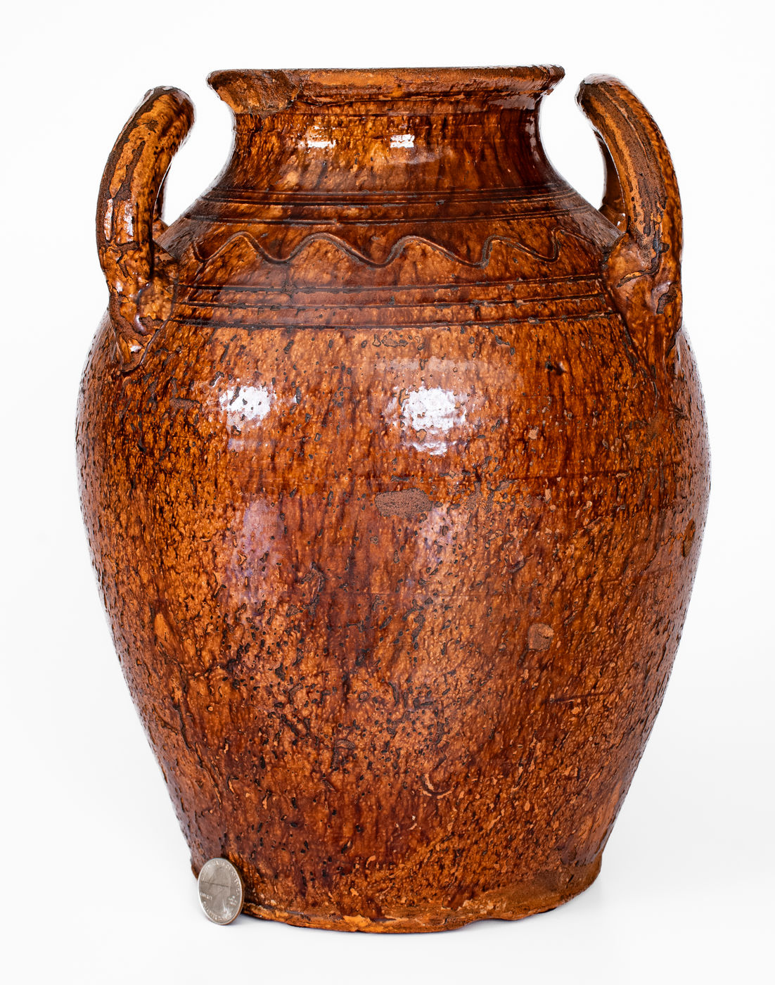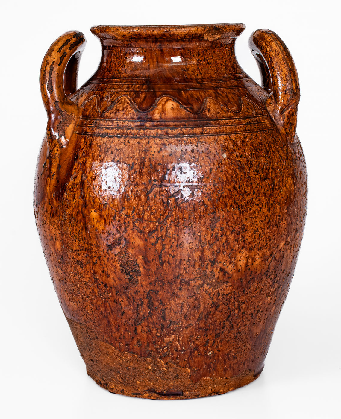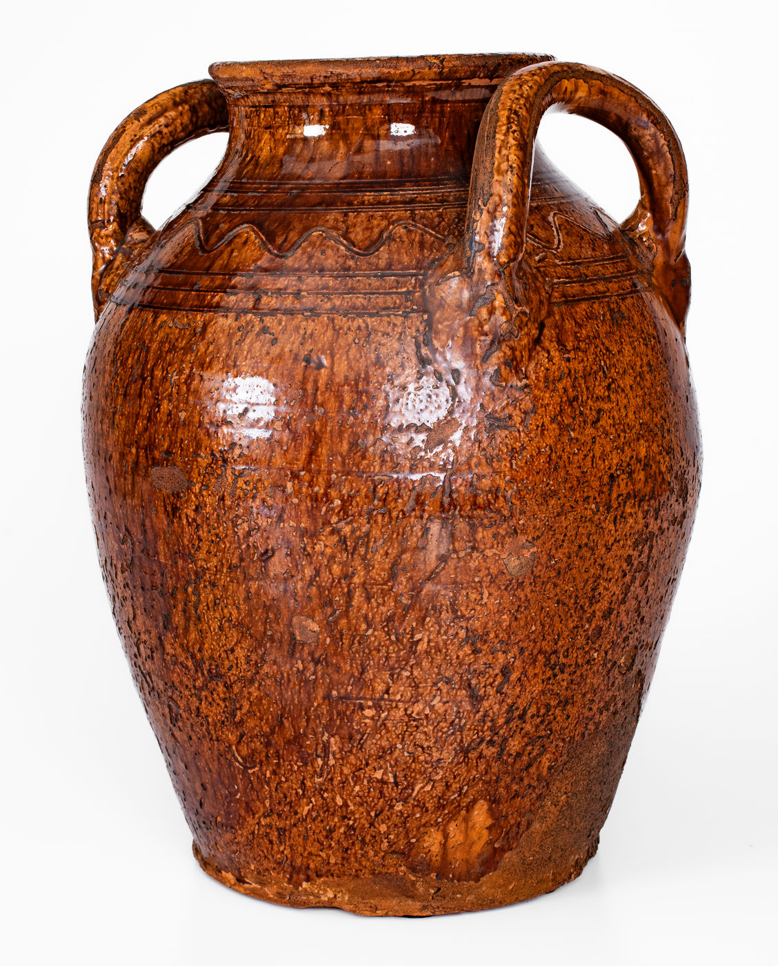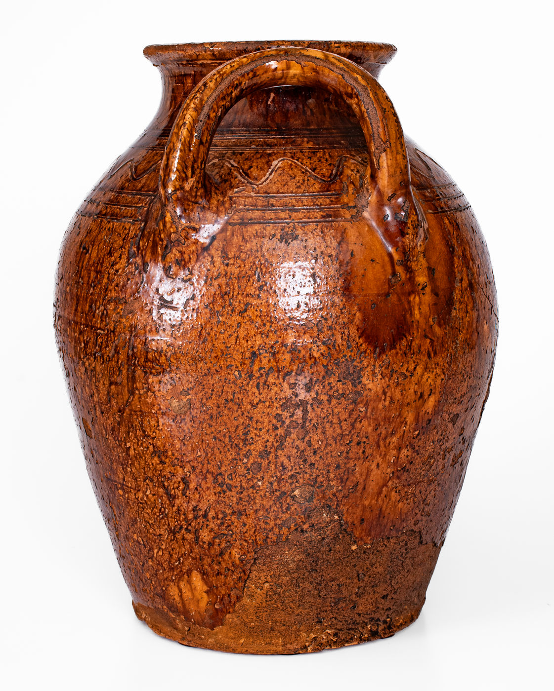 ×Rare Glazed Redware Jar w/ Open Handles, Southwestern Virginia or Eastern Tenn.