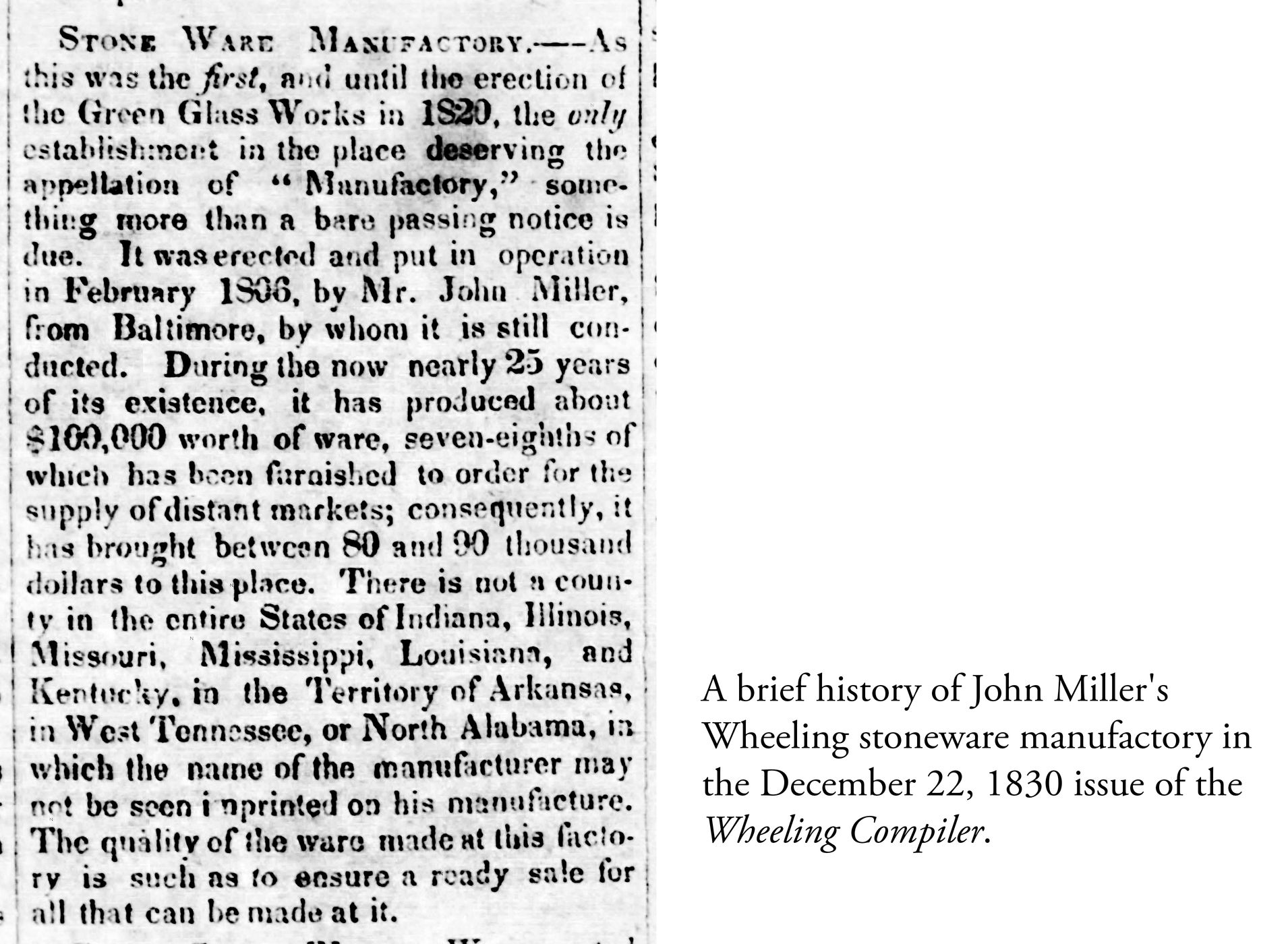×Extremely Rare J. MILLER / WHEELING, VA 1833 Stoneware Jar
