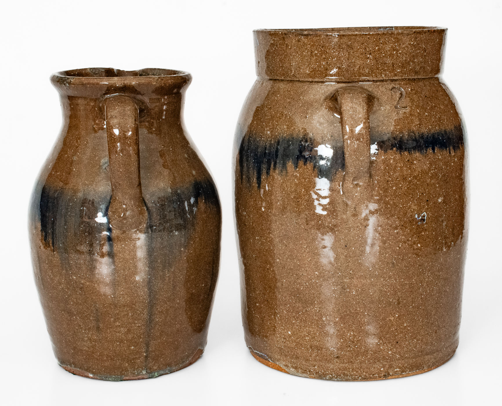 ×Two Pieces of Alkaline-Glazed Stoneware w/ Cobalt Decoration attrib. Joe "Jug" Johnson, Laurens, SC