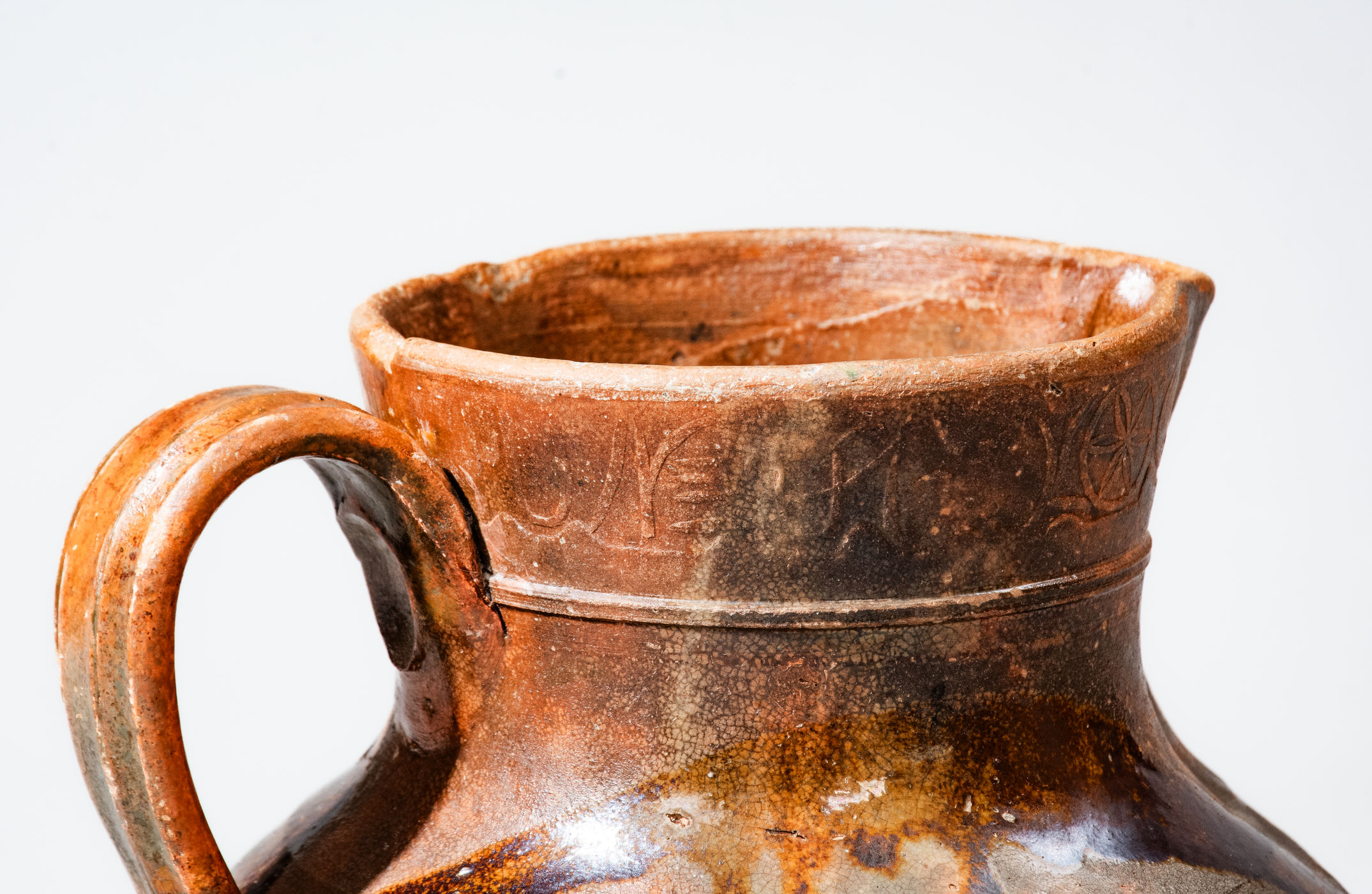 ×Extremely Rare C A HAUN & CO Redware Pitcher, Christopher Alexander Haun, Greene County, TN