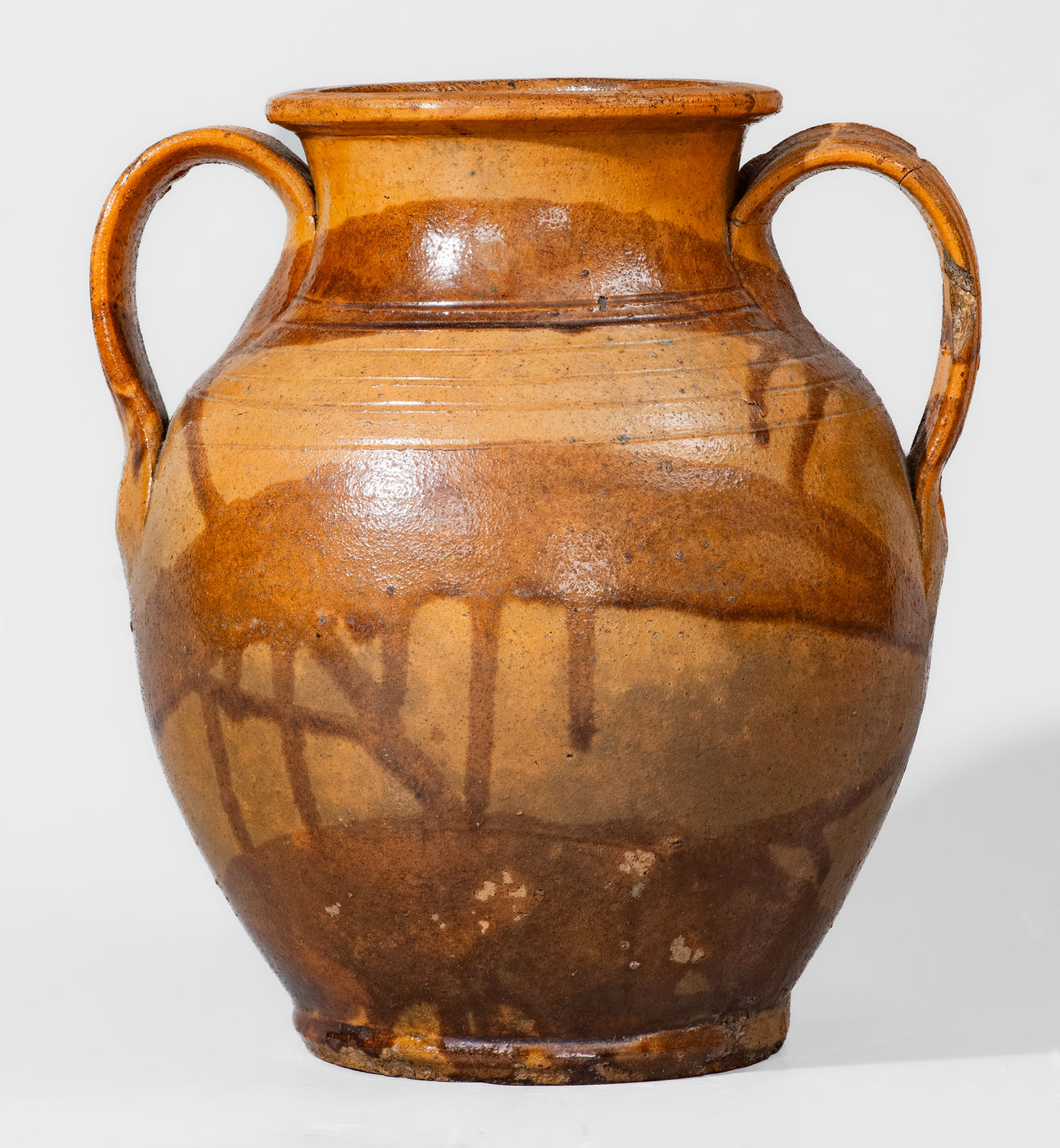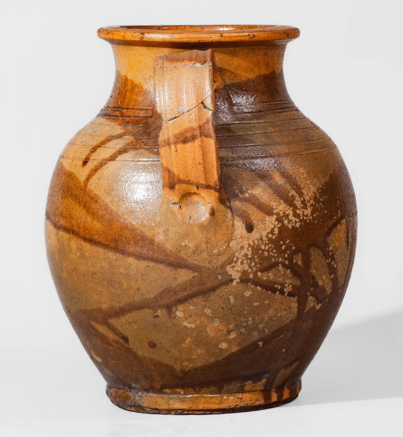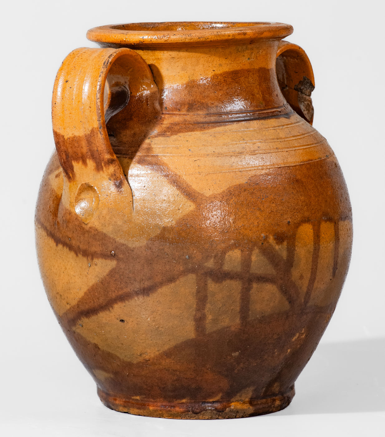 ×Rare Slip-Decorated Redware Jar attrib. Christopher Alexander Haun or J.A. Lowe, Greene County, TN