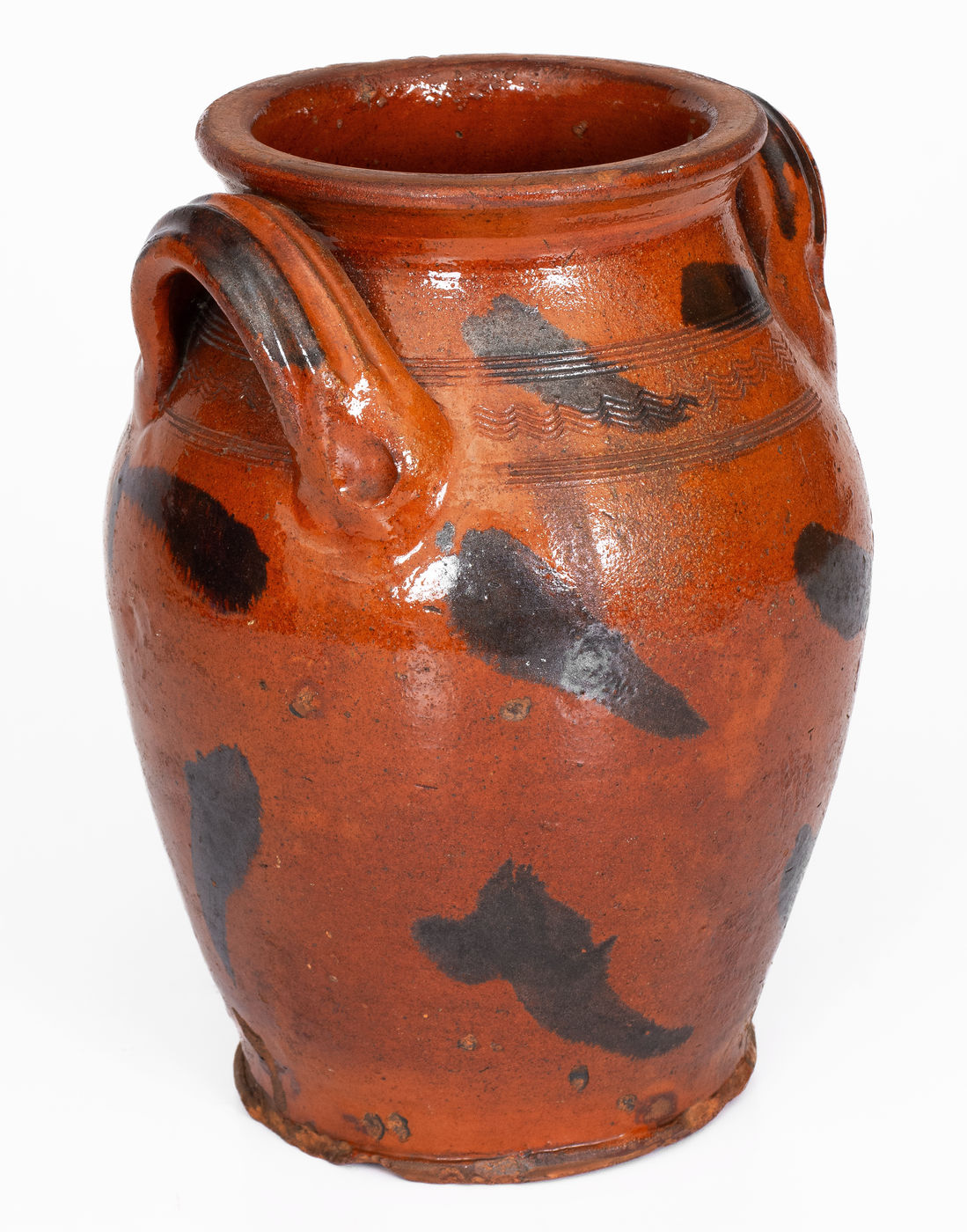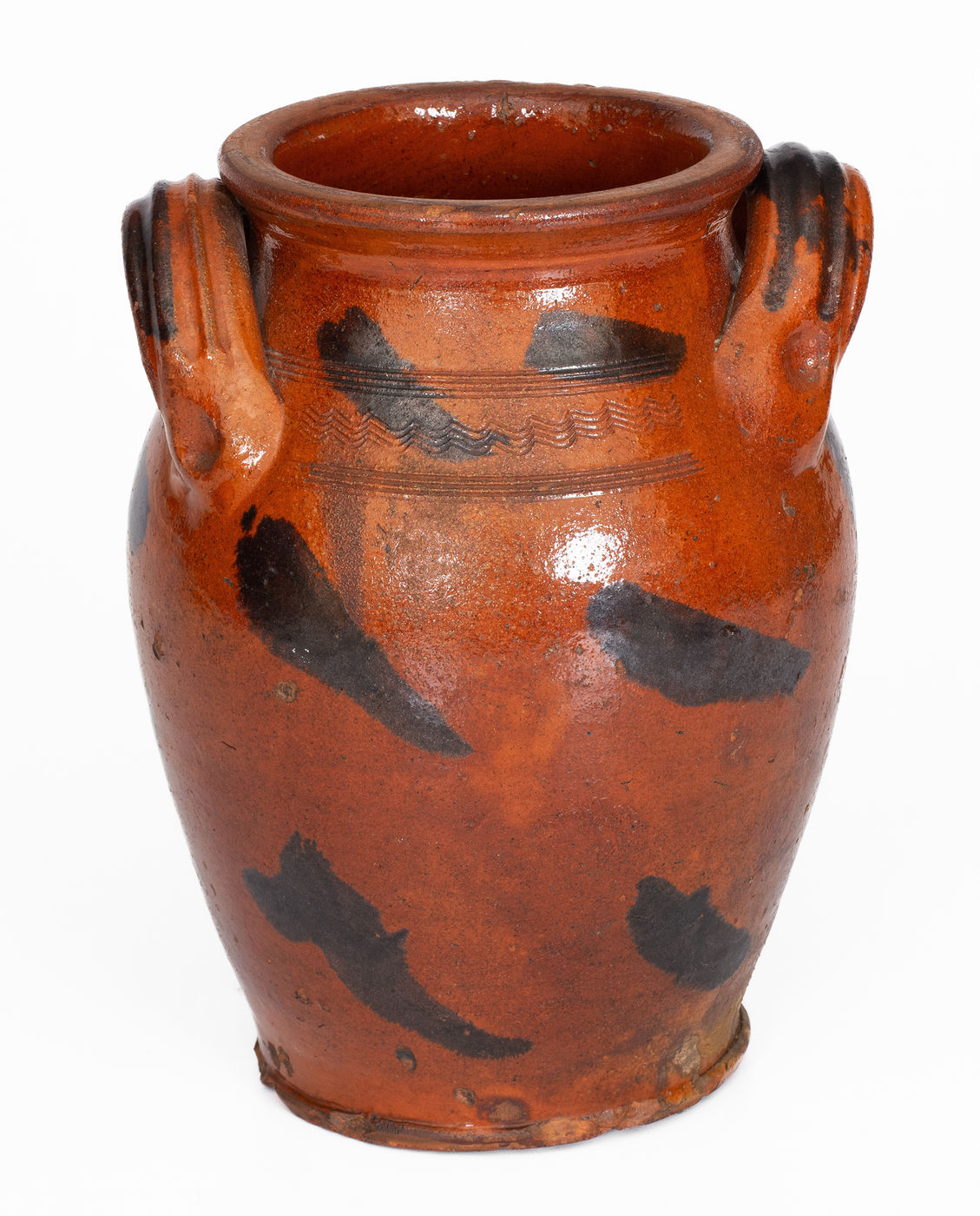 ×Rare and Fine attrib. Cain Pottery, Sullivan, TN Redware Jar w/ Manganese Slash Decoration