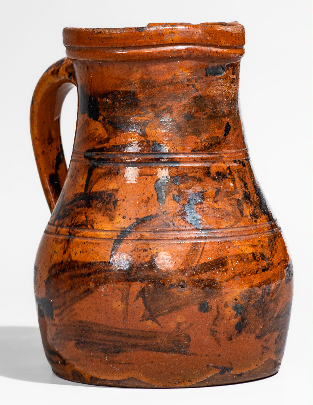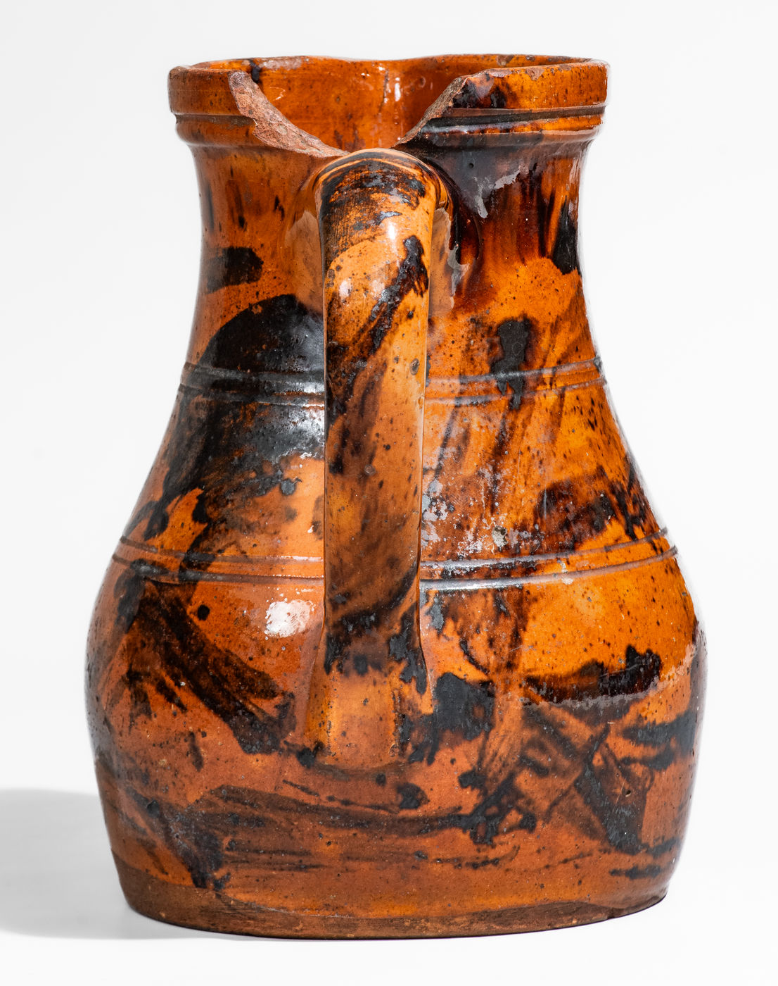 ×Outstanding Eastern Tennessee Redware Pitcher w/ Manganese Slash Decoration