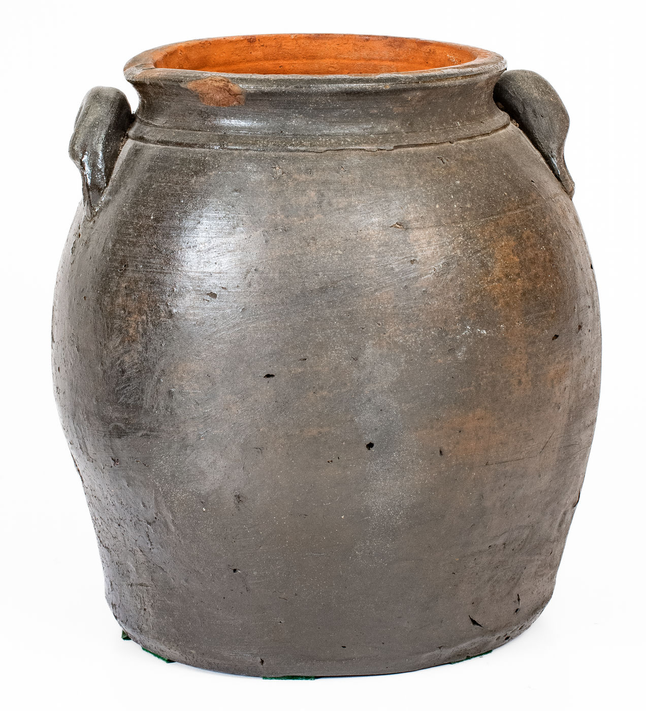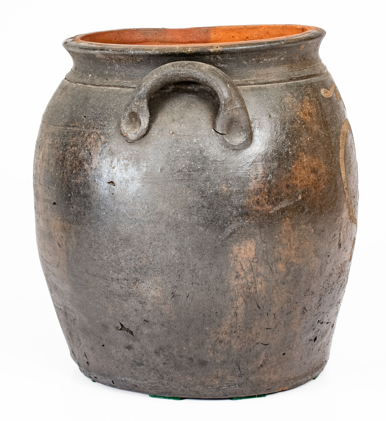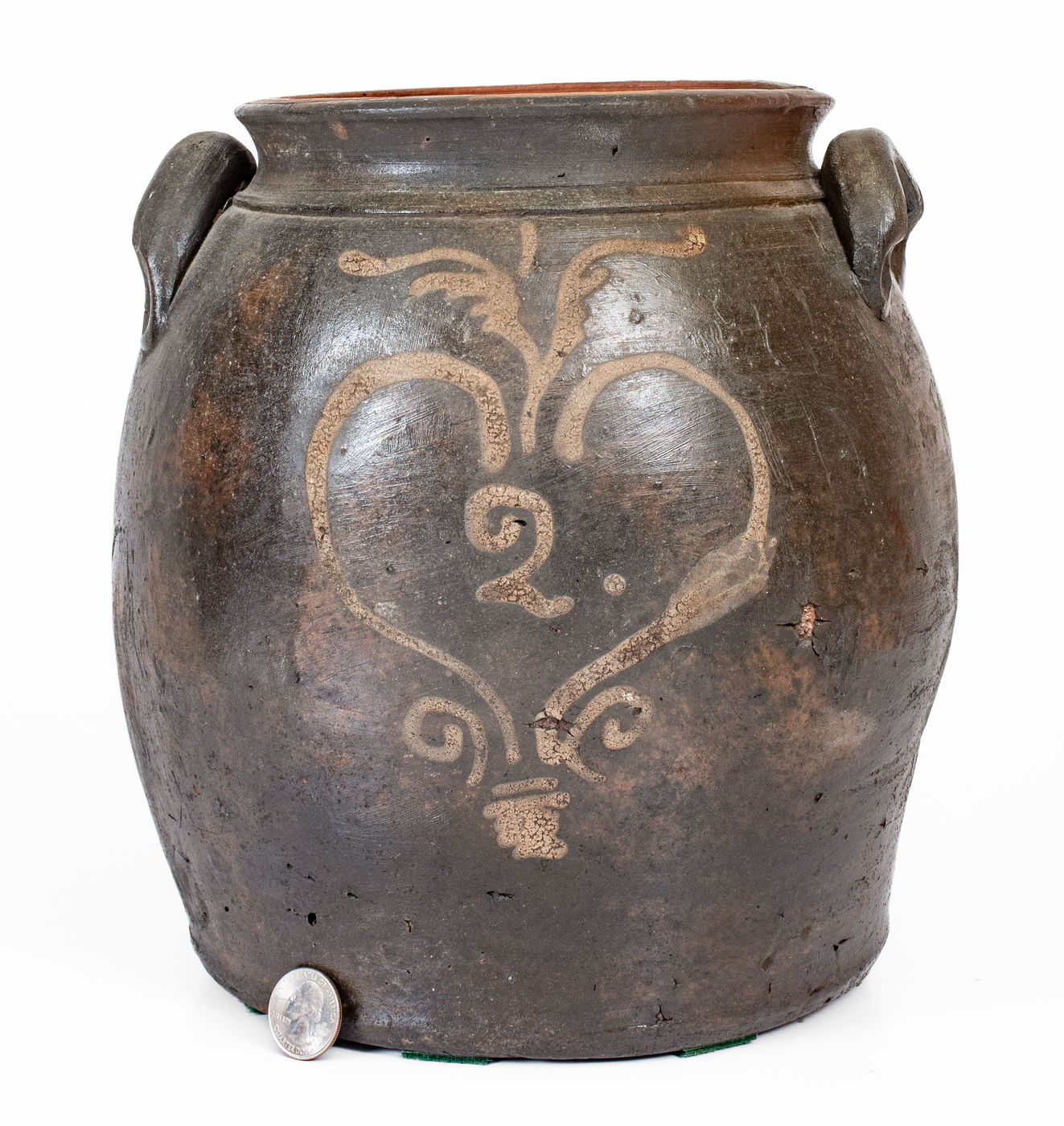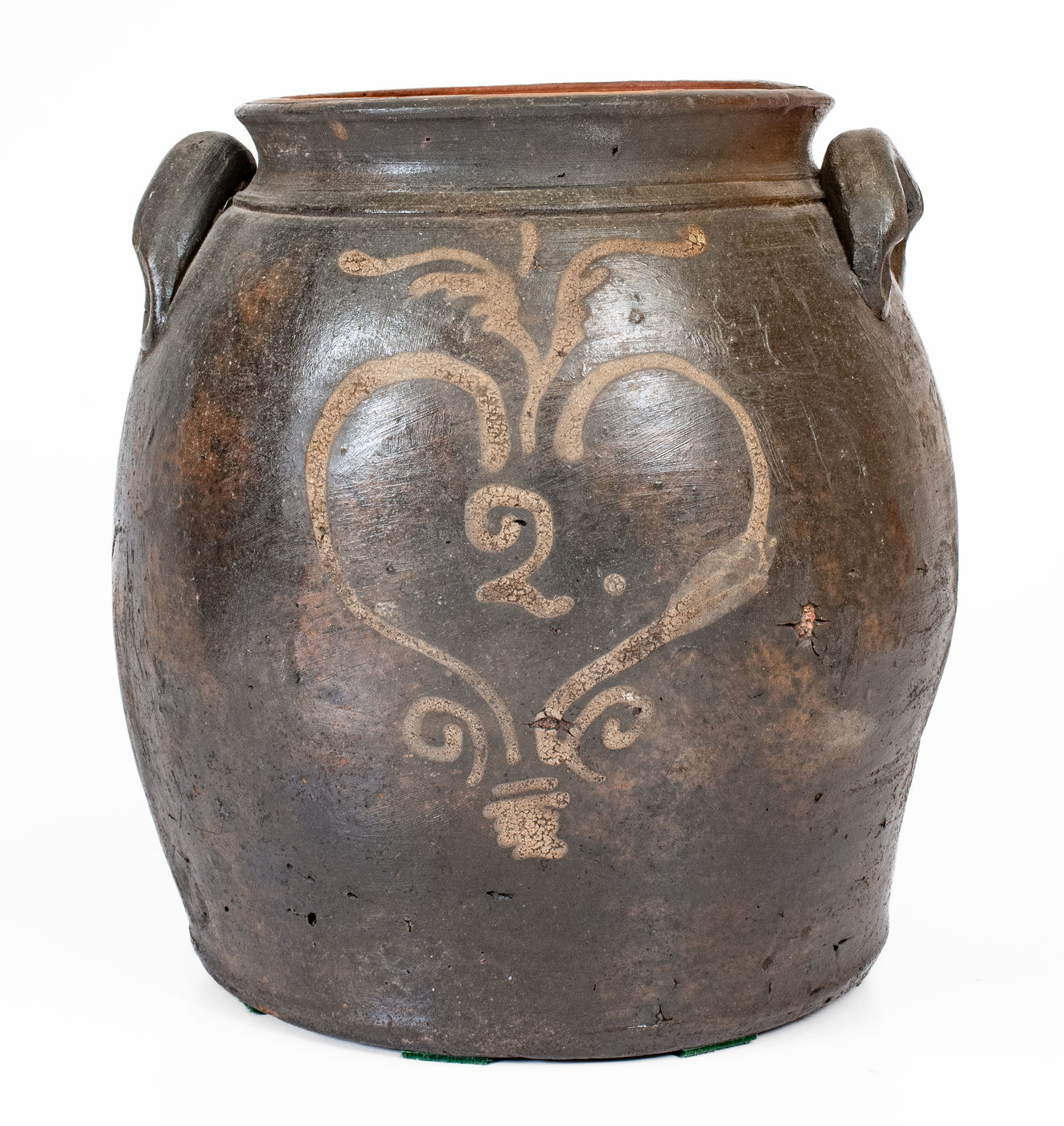 ×Very Rare attrib. Mottern Pottery, Carter County, Tenn. Stoneware Jar w/ White-Slip Heart Decoration