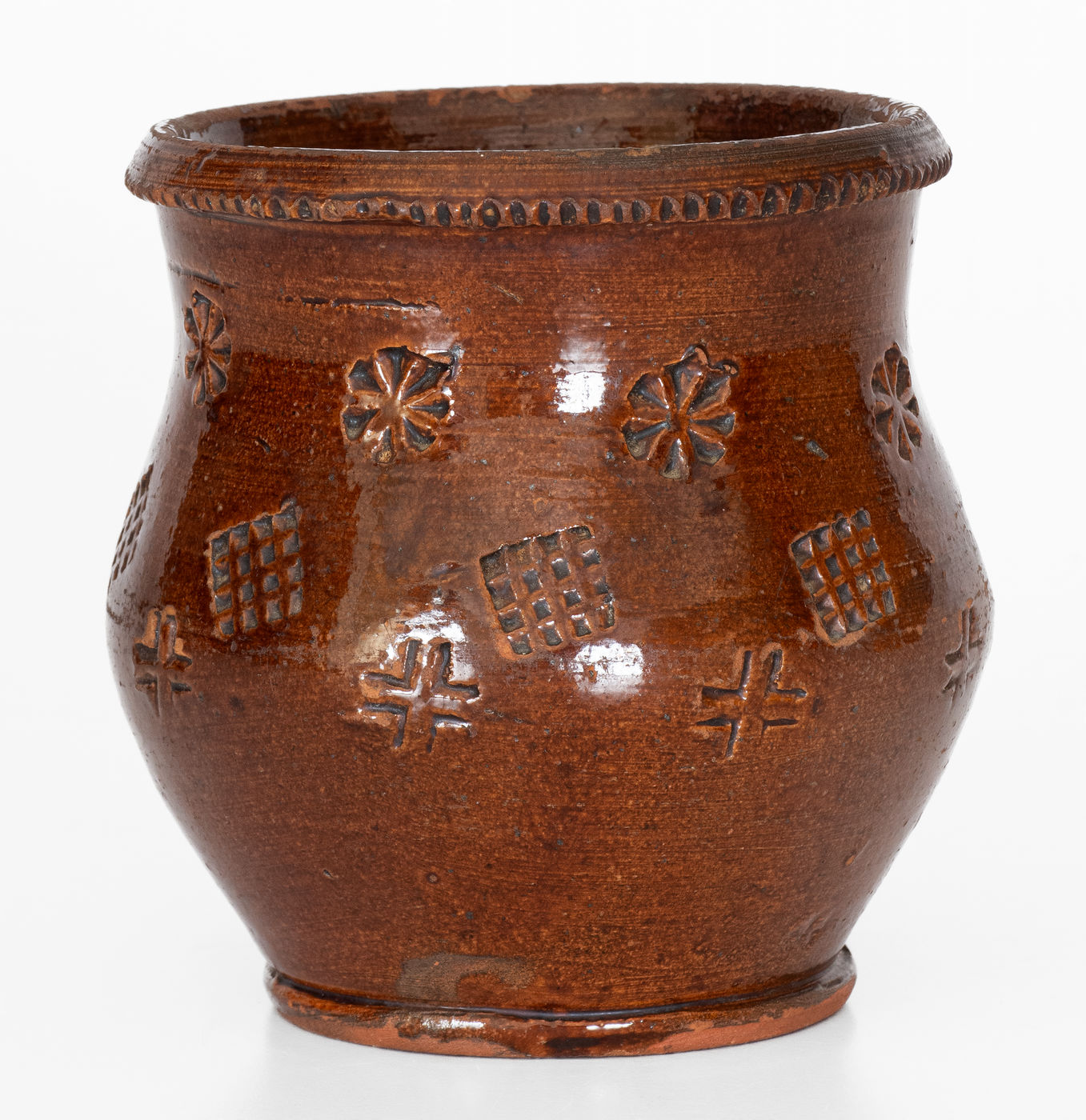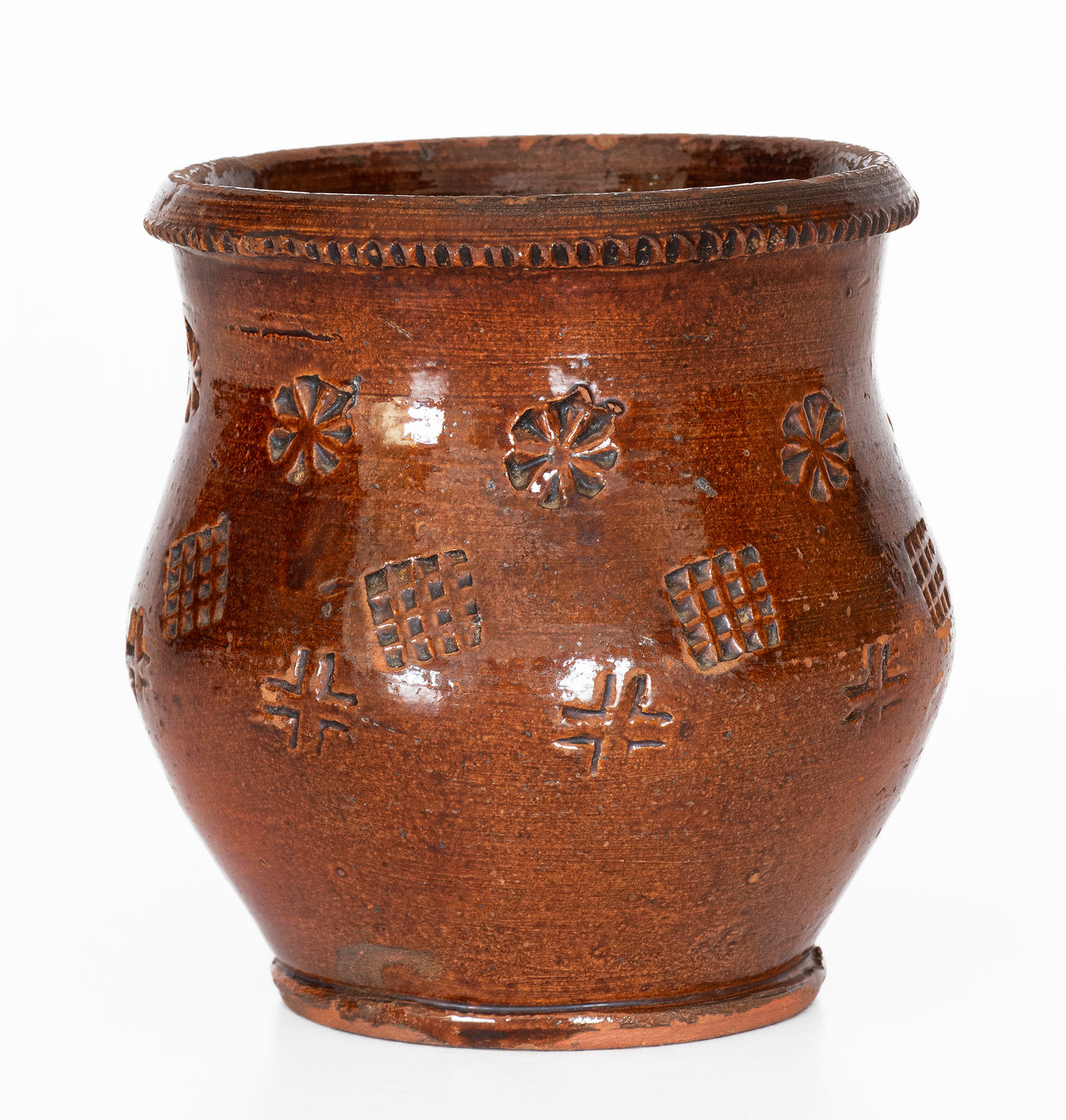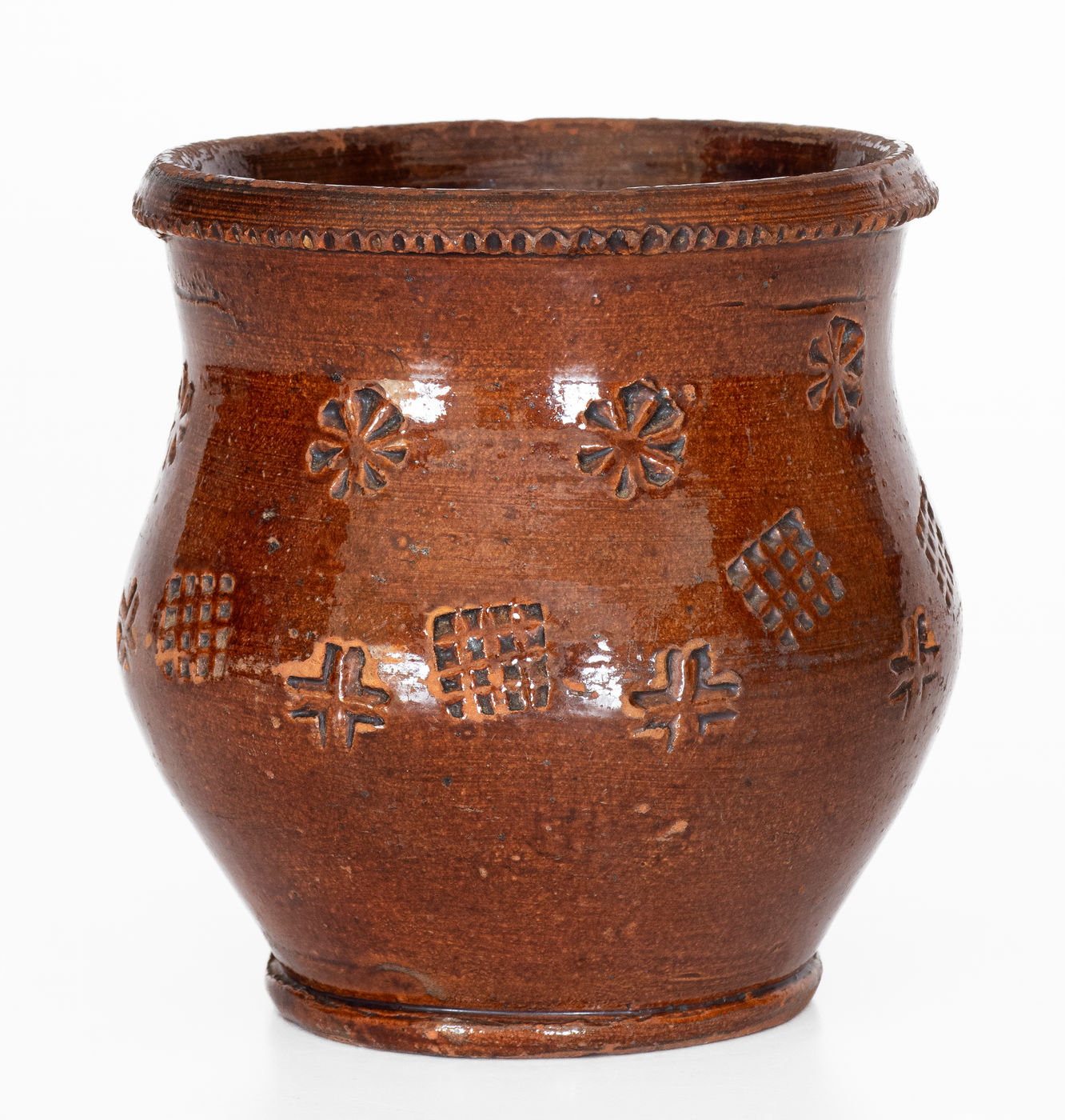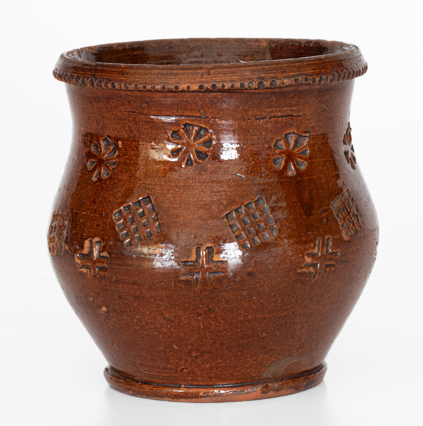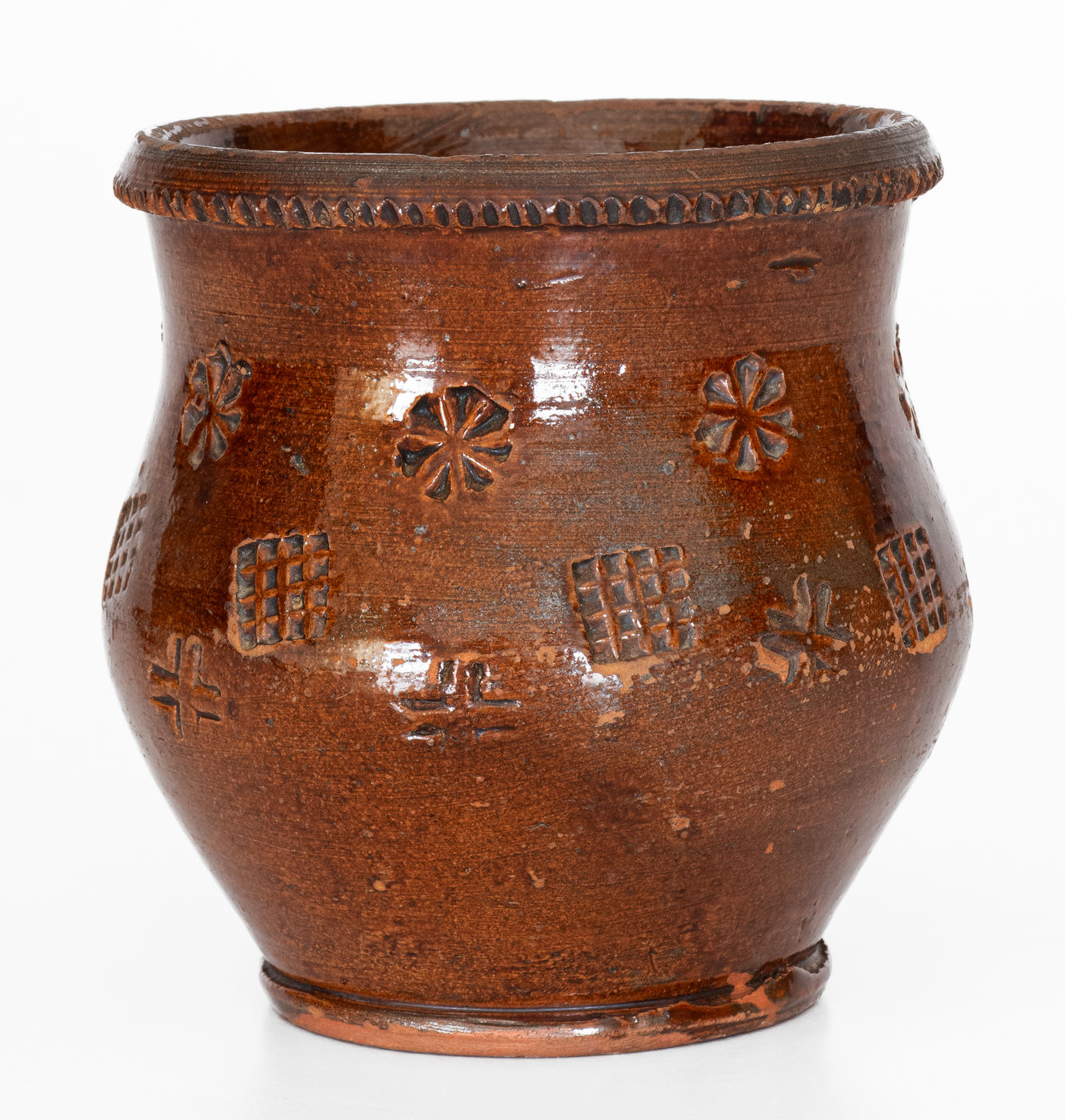 ×Glazed Redware Jar with Impressed Decoration, probably Eastern TN, c1840-80