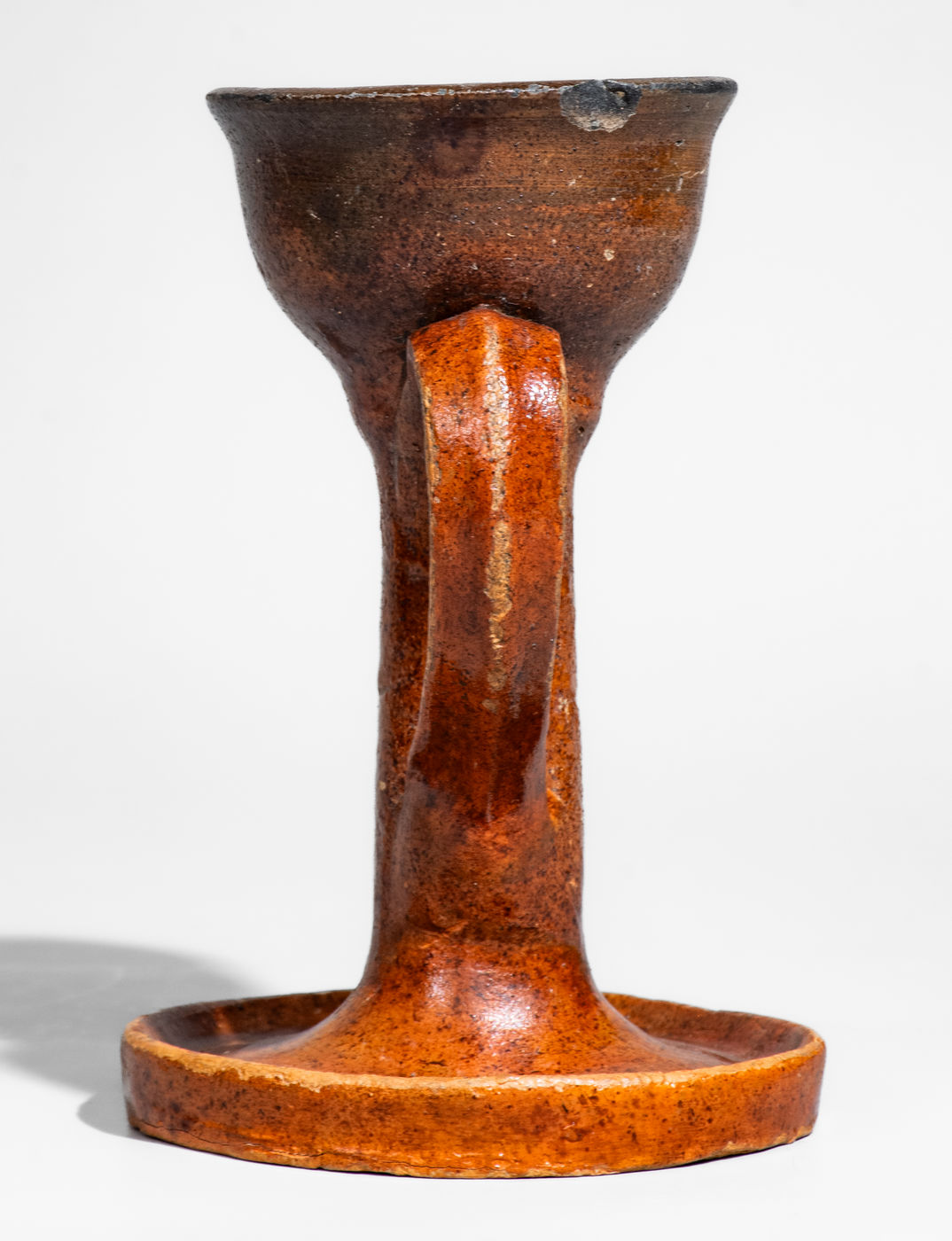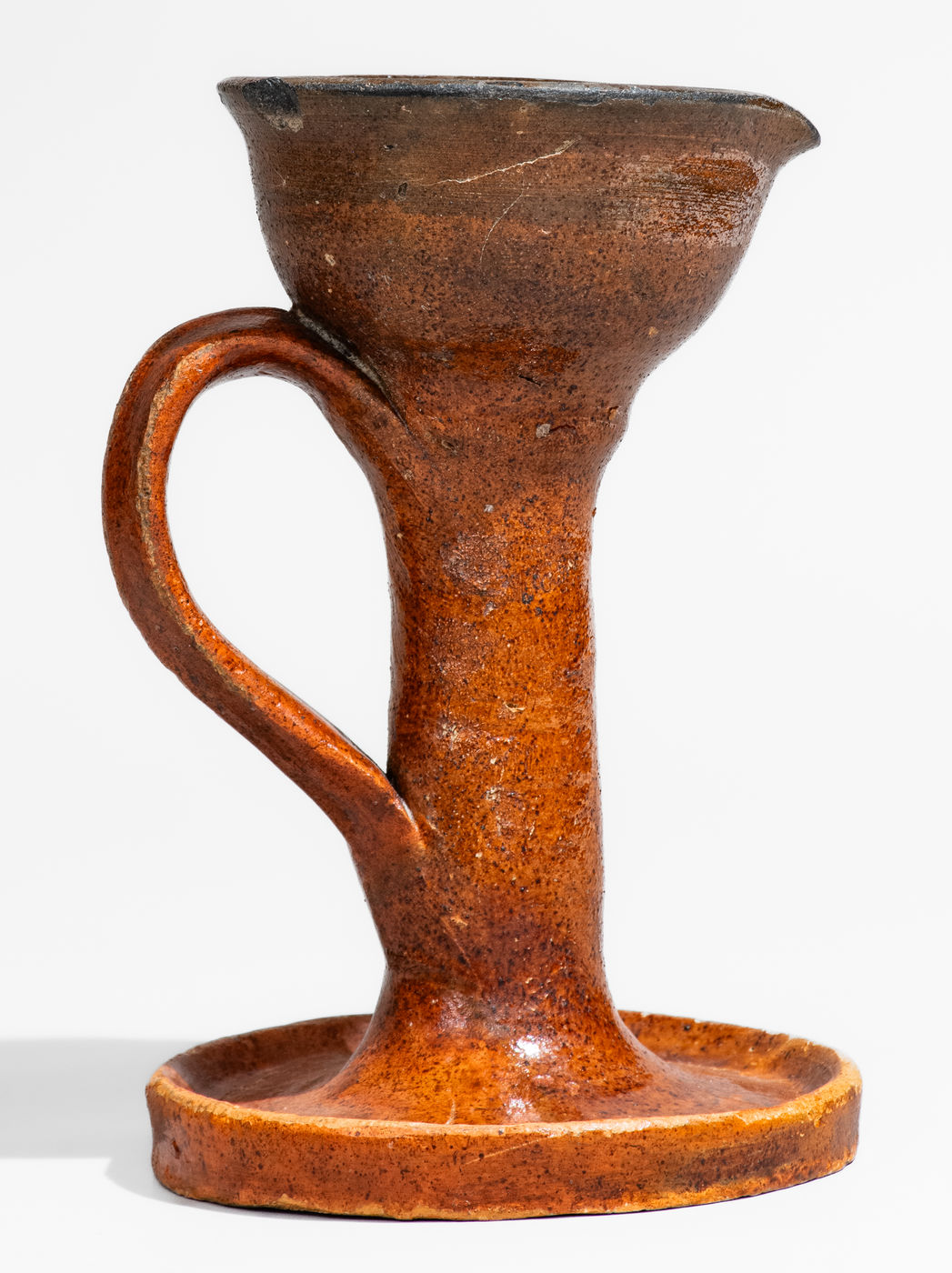 ×Very Rare Greene County, Tennessee Redware Grease Lamp, c1840-1880