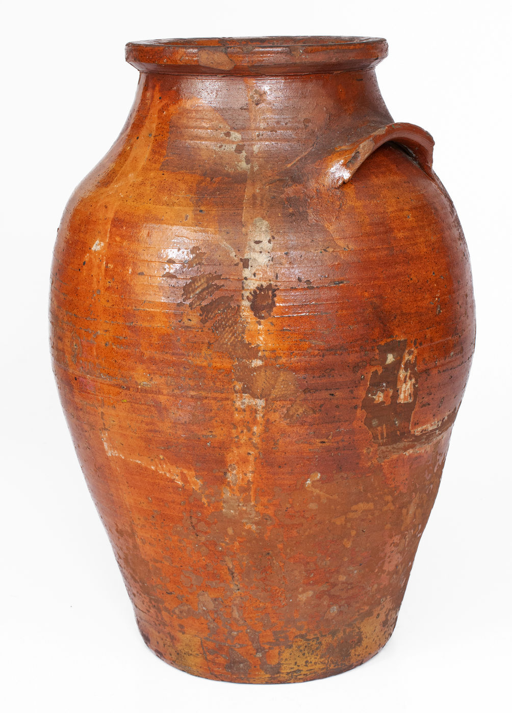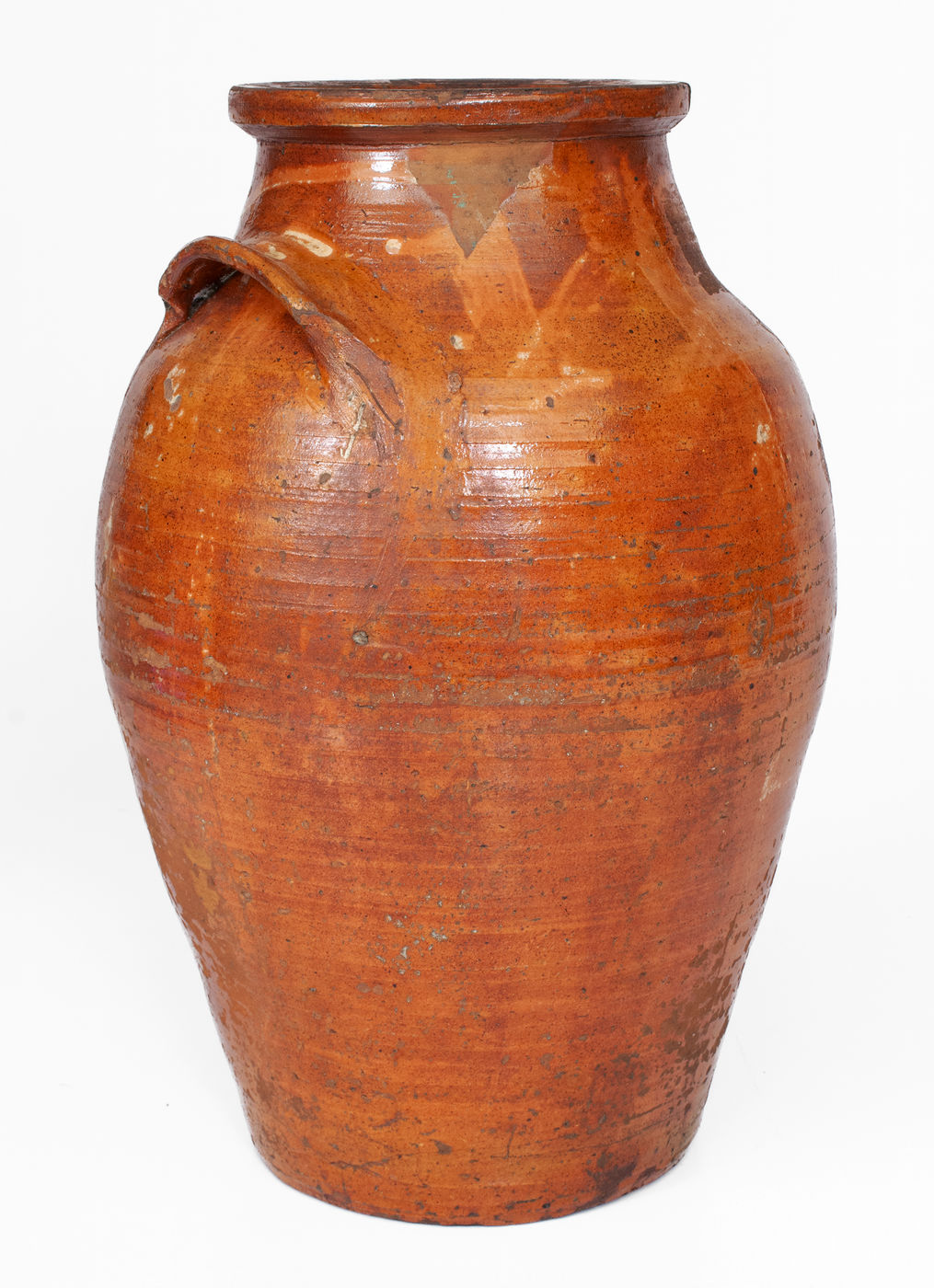 ×Extremely Rare Slip-Decorated Redware Jar, probably Hawkins County, TN, early 19th century