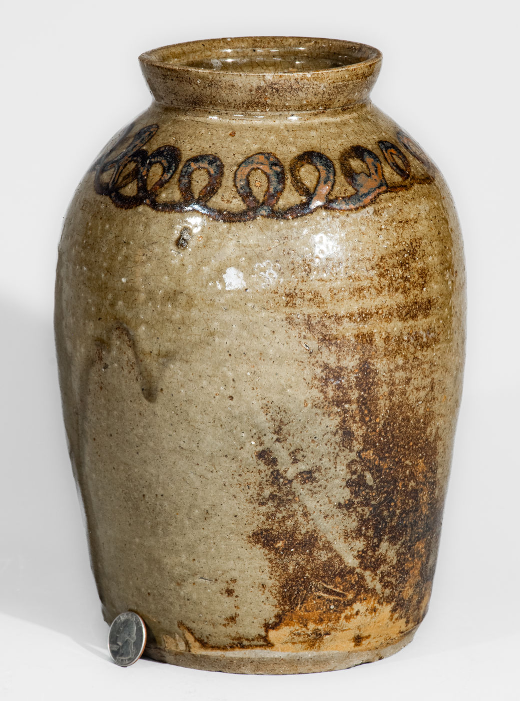 ×Scarce Alkaline-Glazed Stoneware Jar w/ Iron Slip Decoration, attrib. Thomas Chandler, Edgefield District, SC