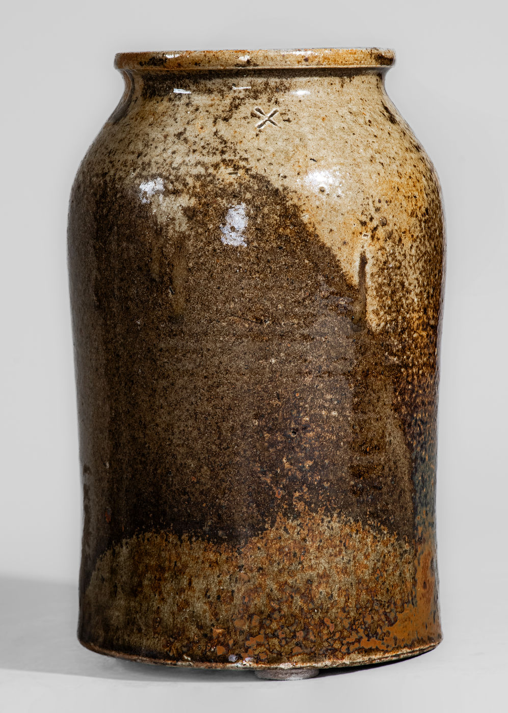 ×Alkaline-Glazed Stoneware Jar Stamped "X," Edgefield District or Columbia, SC