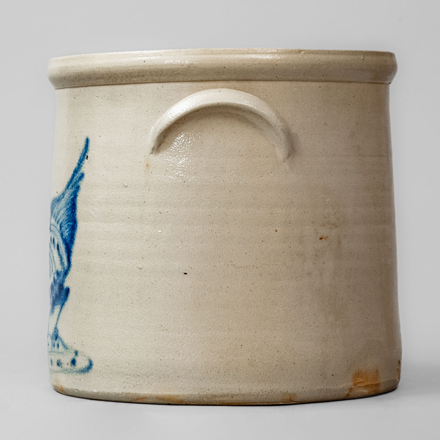 ×Attrib. Brady & Ryan, Ellenville, NY Stoneware Crock w/ Cobalt Chicken Pecking Corn
