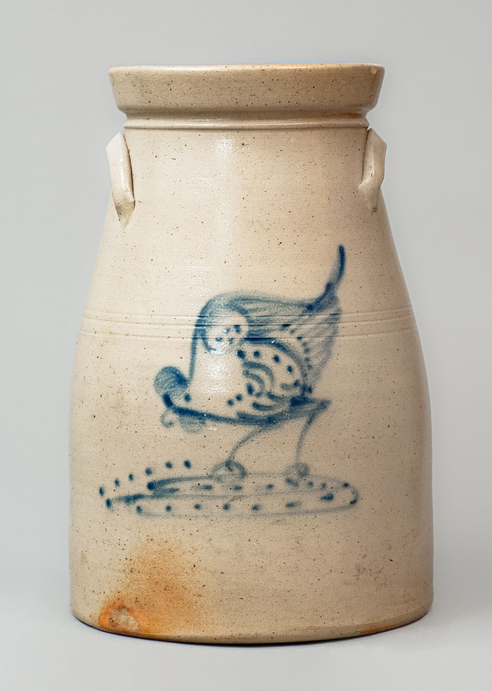 ×NY State Stoneware Churn w/ Cobalt Chicken Pecking Corn Decoration, c1885