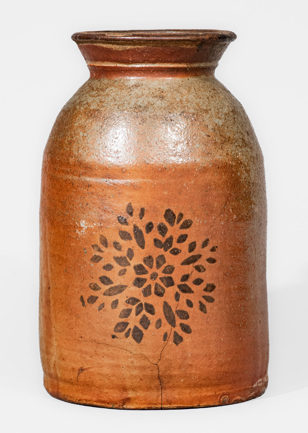 ×Attrib. Whelchel Pottery, Gaffney, SC area Stoneware Canning Jar w/ Stenciled Brown Slip Floral Motif