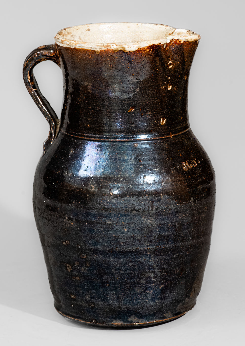 ×JGB (Joseph Gregory Baynham), Trenton, SC Glazed Stoneware Pitcher, late 19th century