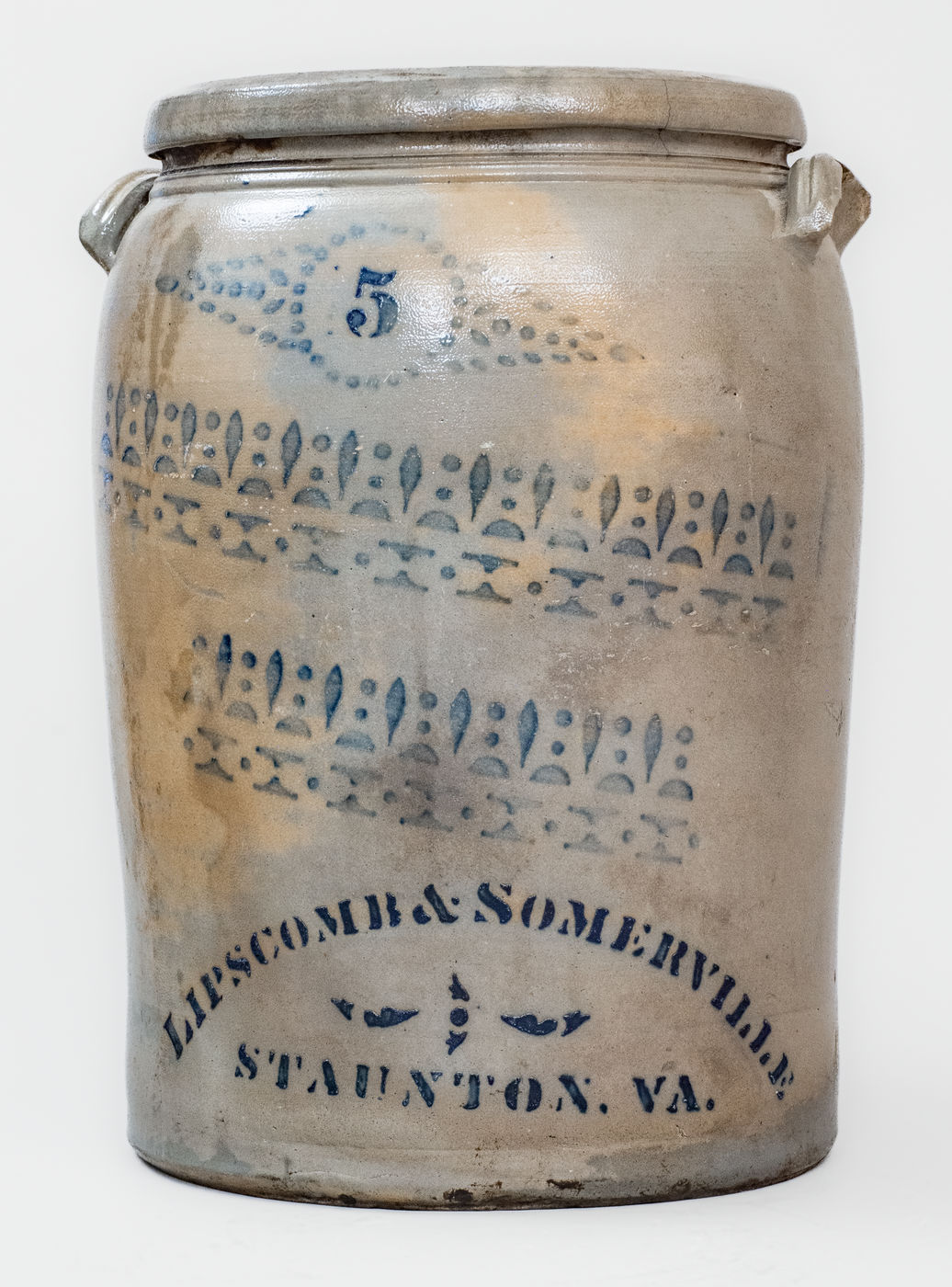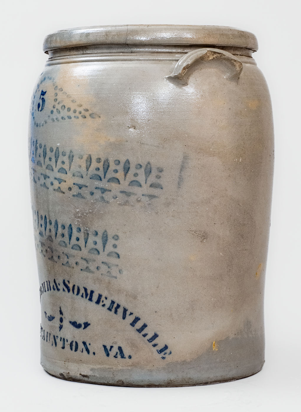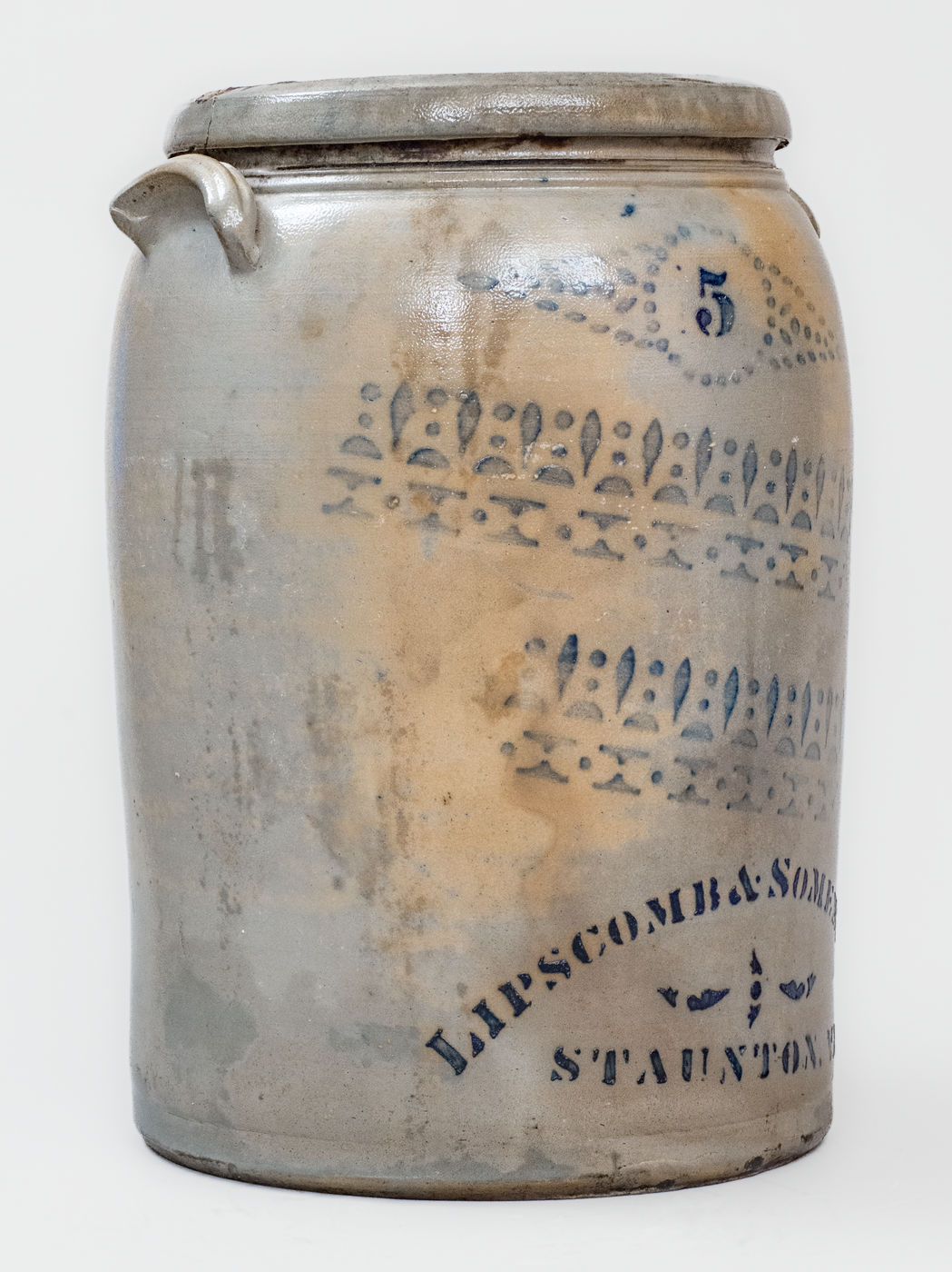 ×Fine LIPSCOMB & SOMERVILLE / STAUNTON, VA Five-Gallon Cobalt-Stenciled Stoneware Jar