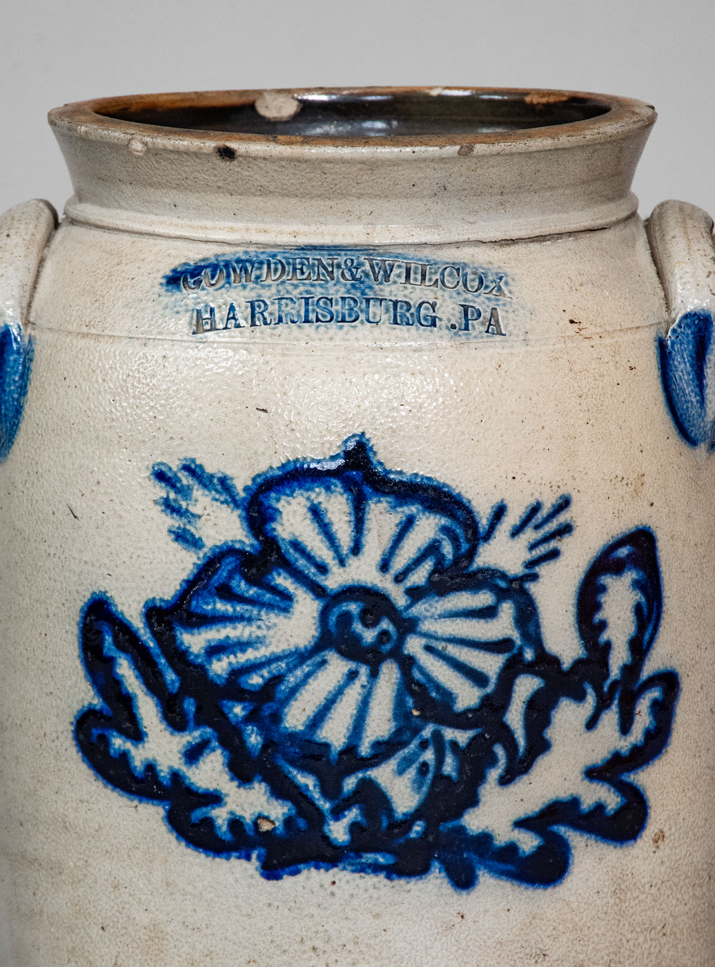 ×Fine COWDEN & WILCOX / HARRISBURG, PA Stoneware Jar w/ Slip-Trailed Cobalt Decoration