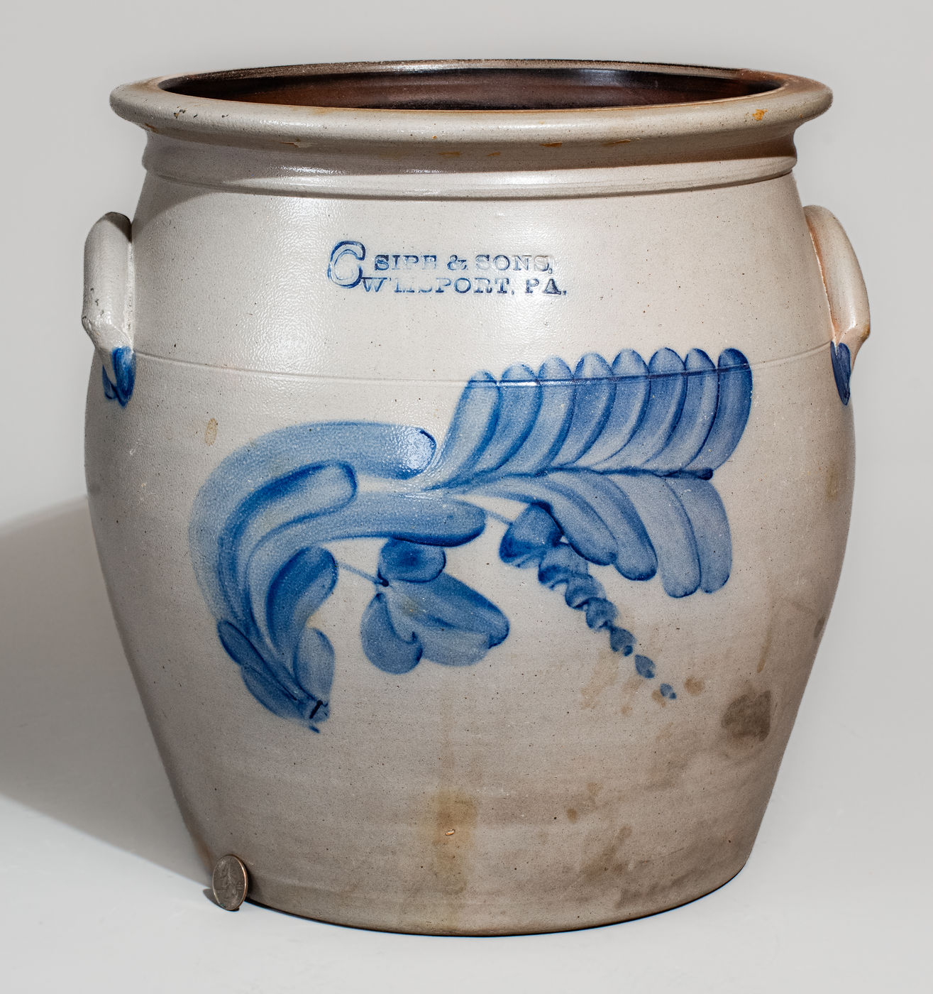 ×SIPE & SONS, / WILLIAMSPORT, PA Six-Gallon Stoneware Jar , circa 1885