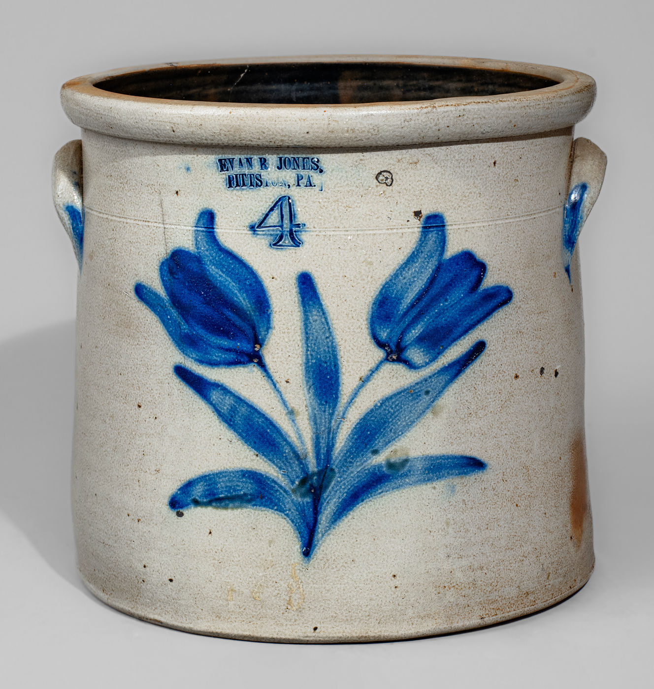×EVAN R. JONES. / PITTSTON, PA Four-Gallon Stoneware Crock, c1875