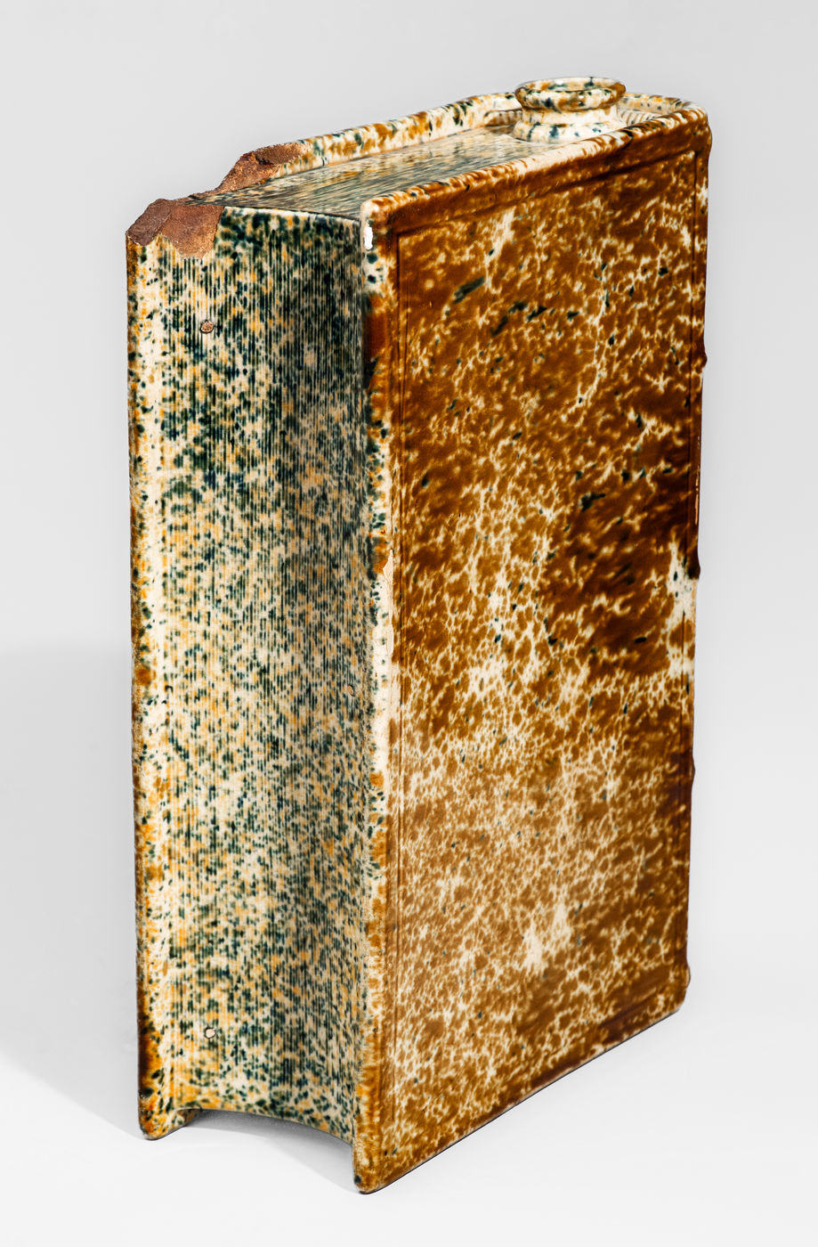 ×BENNINGTON / BATTLE Large-Sized Flint Enamel Book Flask, attrib. Lyman, Fenton & Co., Bennington, VT