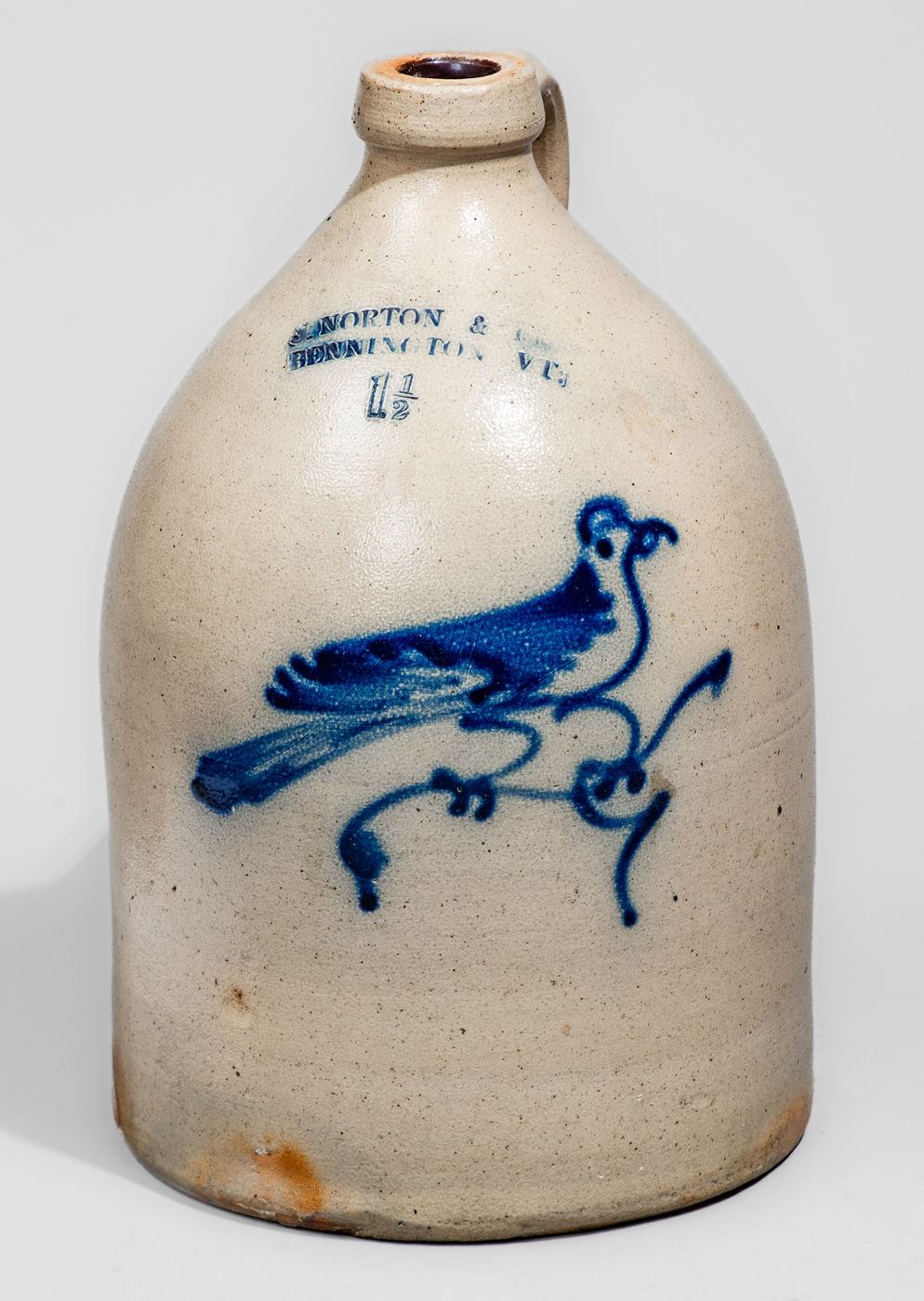 ×J. NORTON & CO / BENNINGTON VT Stoneware Bird Jug