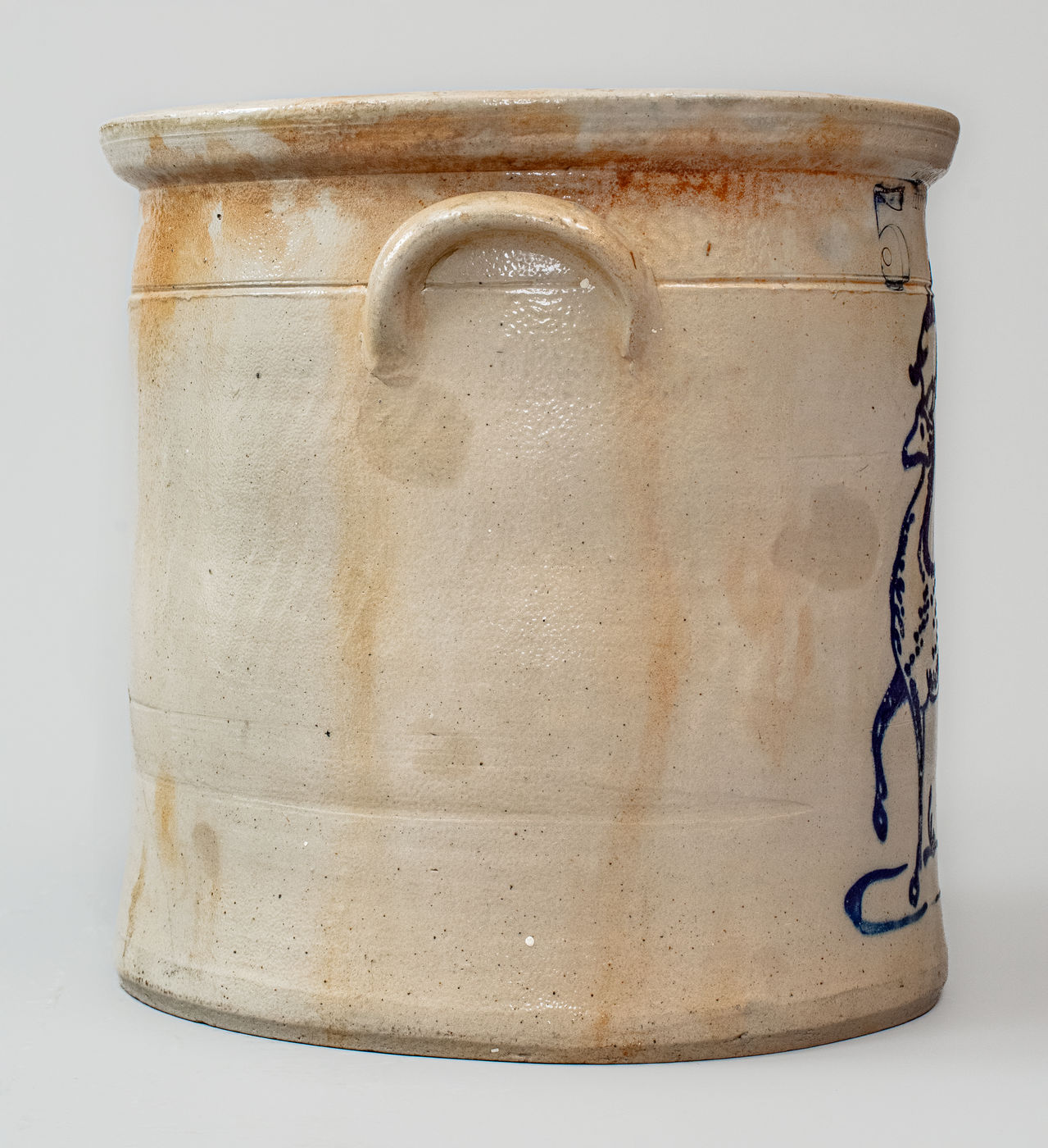 ×Scarce HUBELL & CHESEBRO / GEDDES, N.Y. Five-Gallon Stoneware Deer Crock